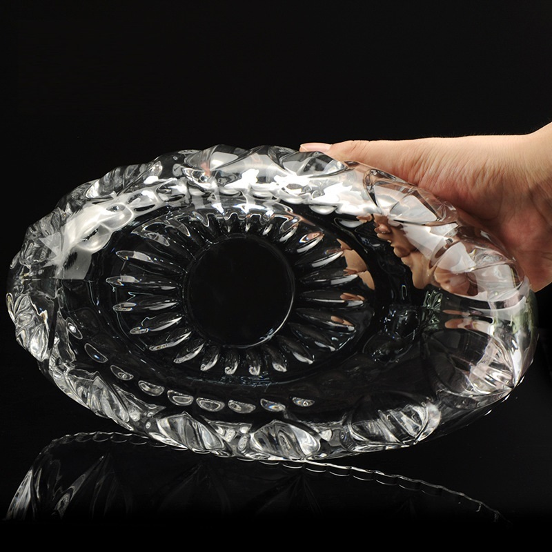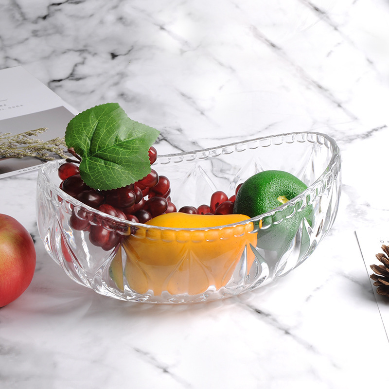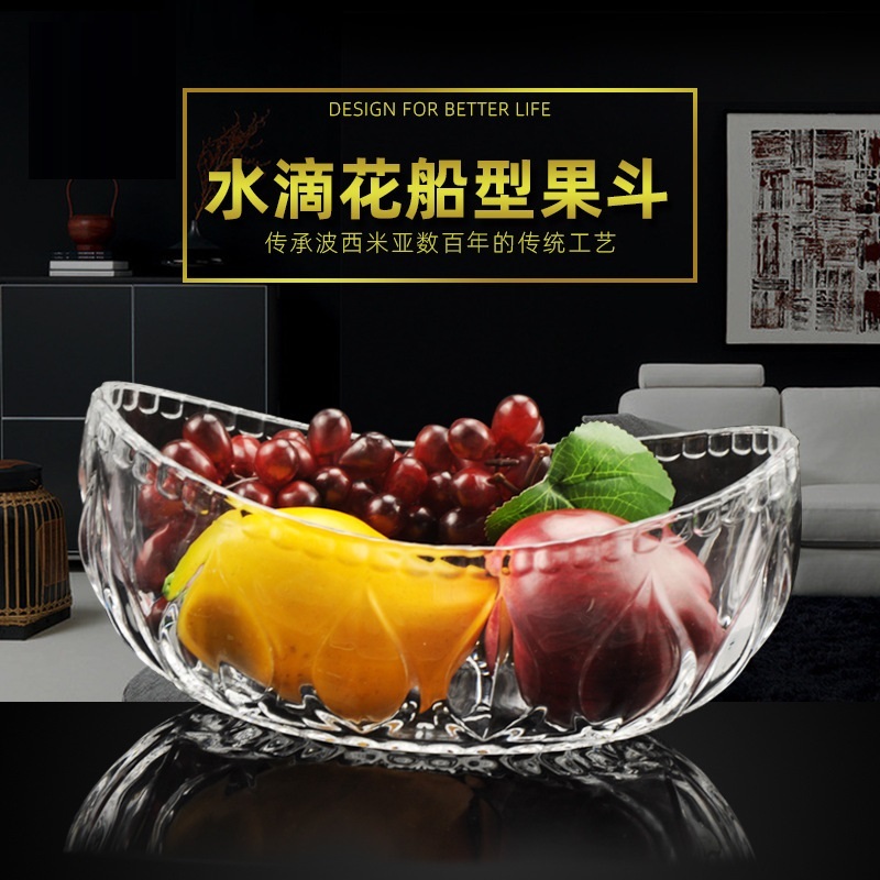 家居创意简约水晶玻璃元宝型果盘前台果斗水果盘礼品客厅摆件