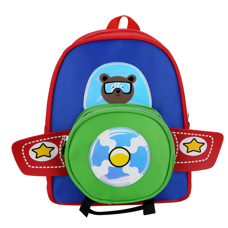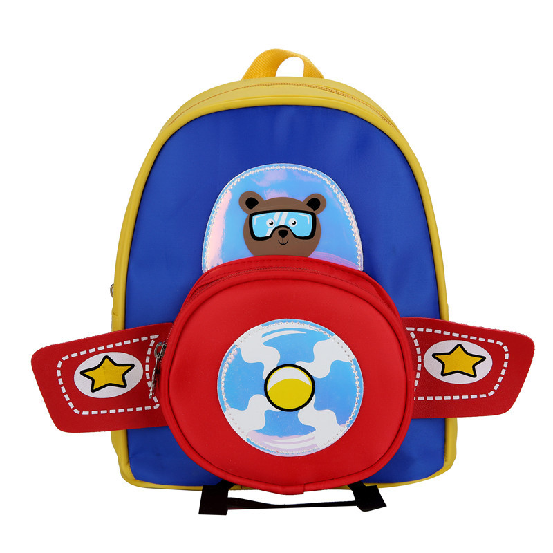 幼儿园书包男女宝宝1-3-6岁可爱防走失背包飞机小熊儿童双肩包男