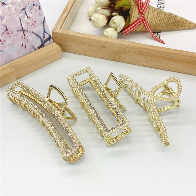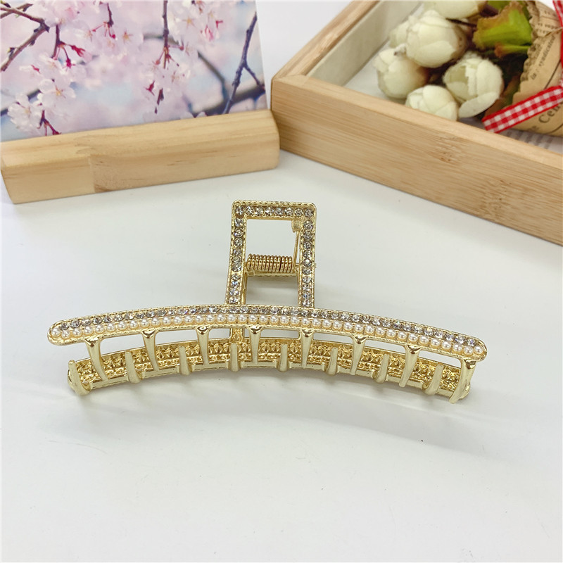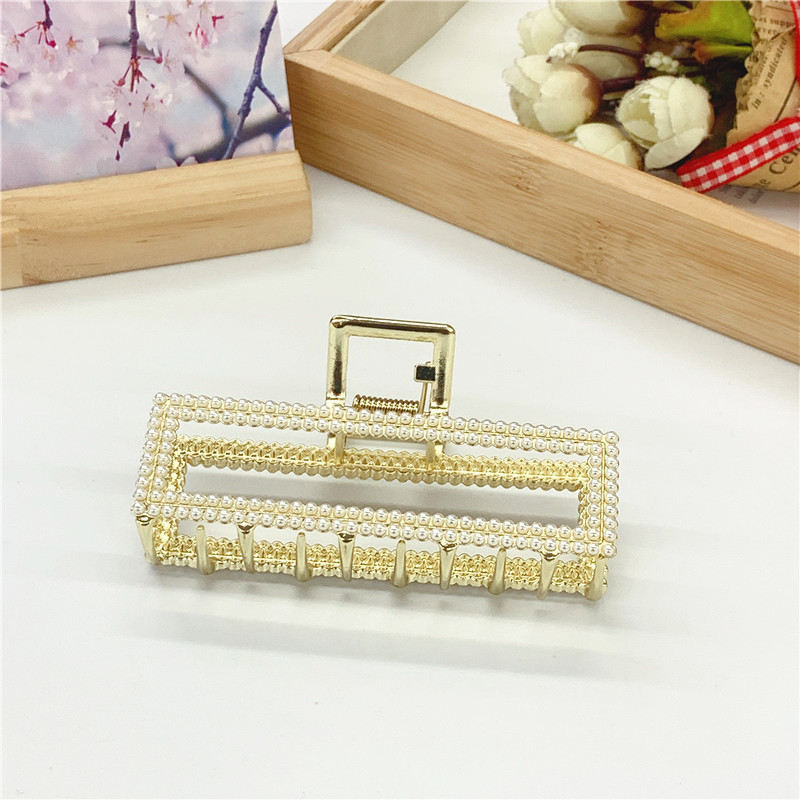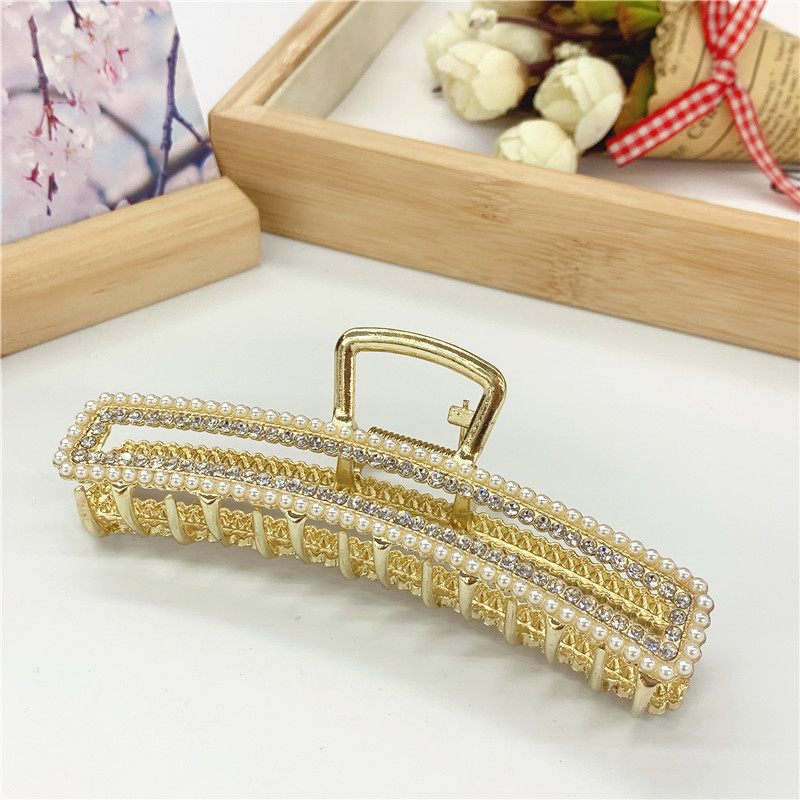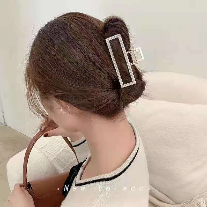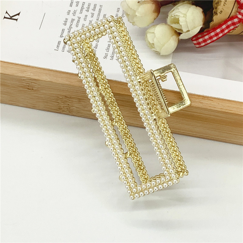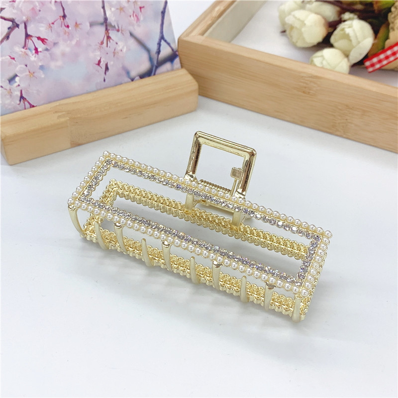 双层珍珠钻发饰流行时尚女生甜美大号细水钻方形发夹抓夹发抓