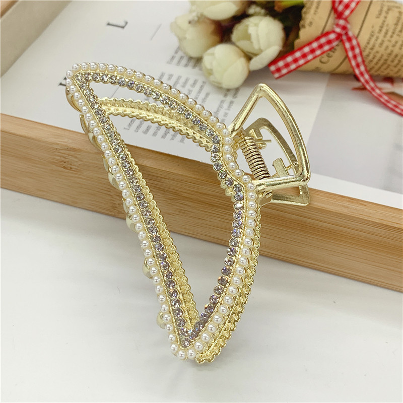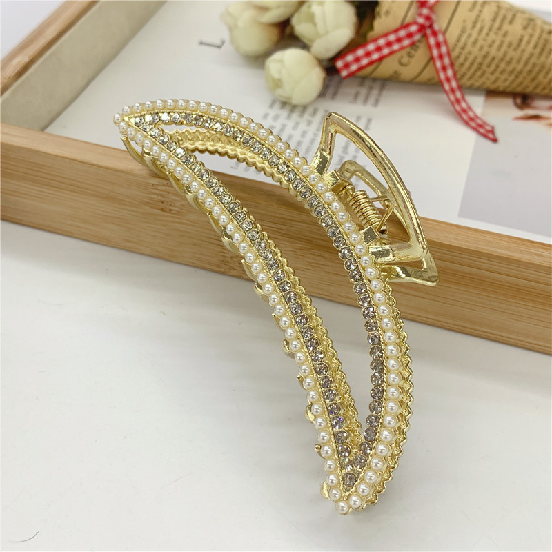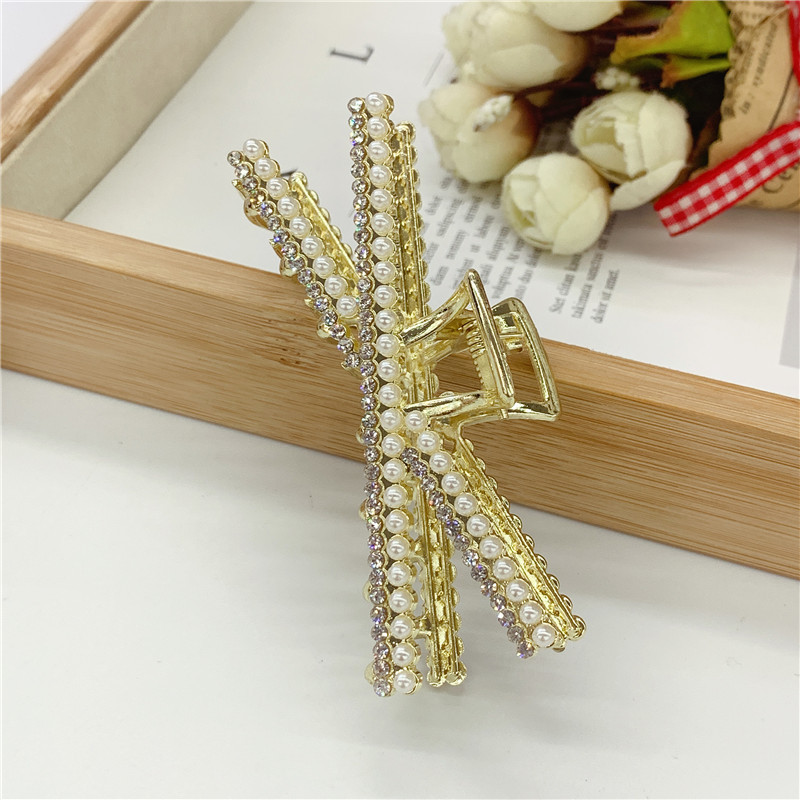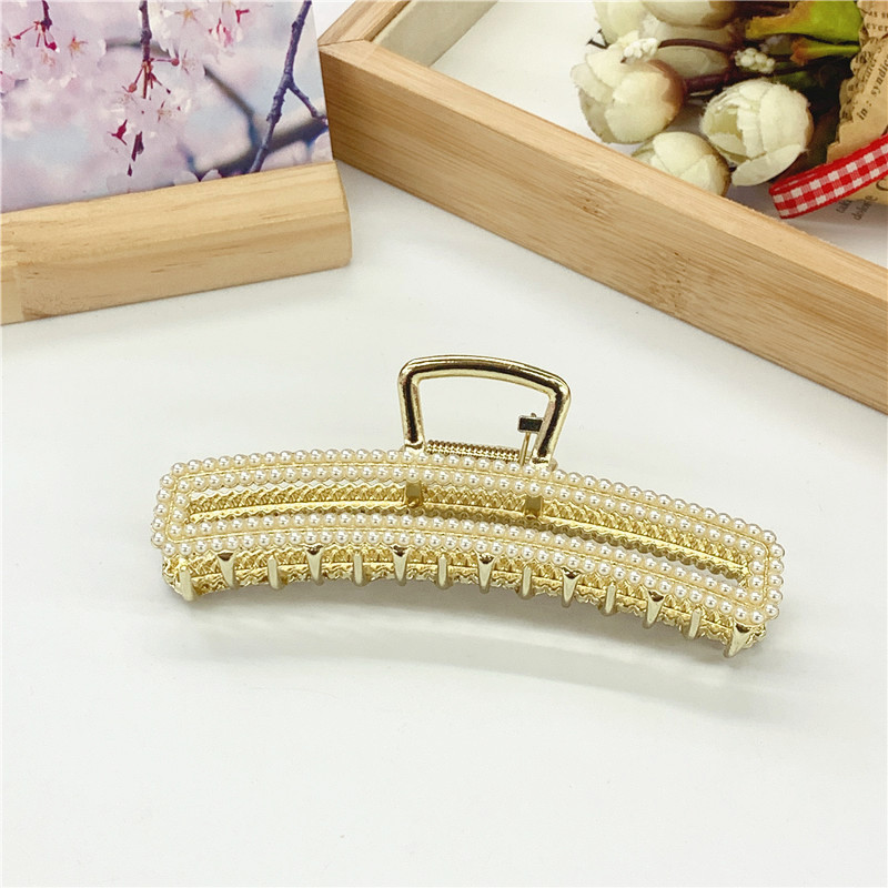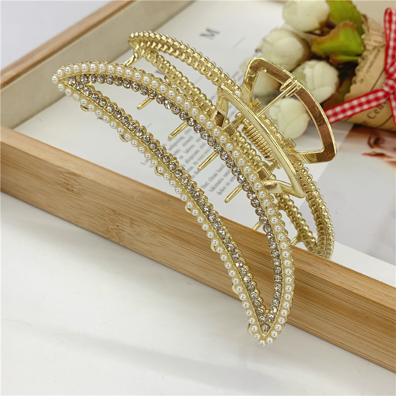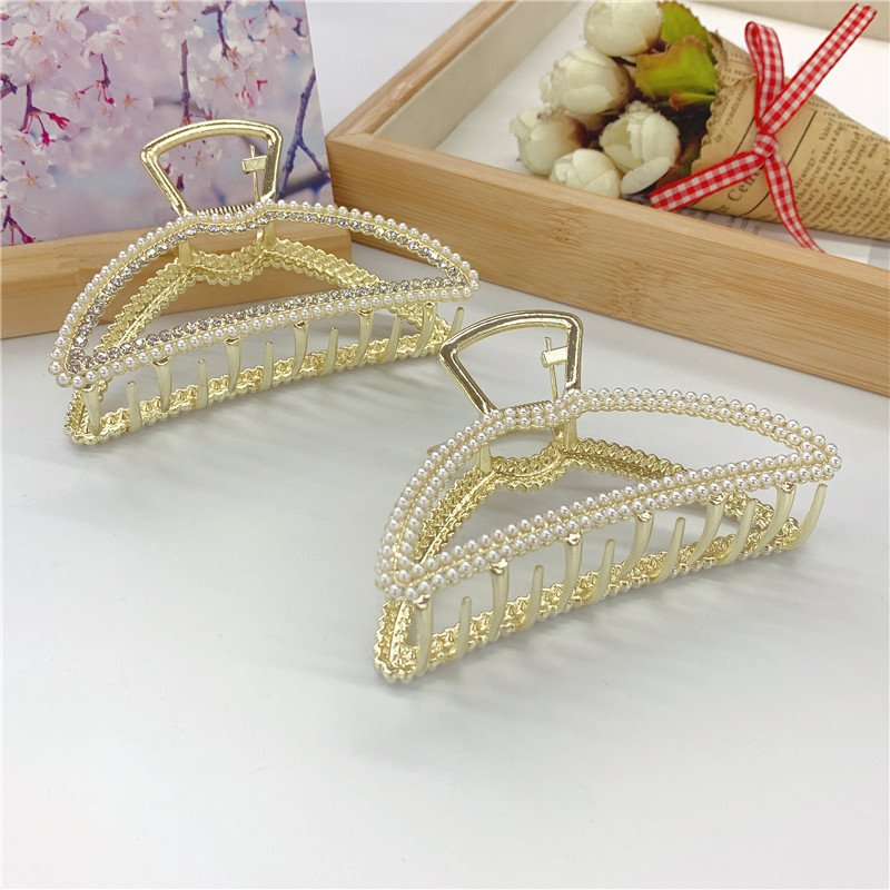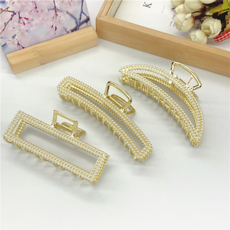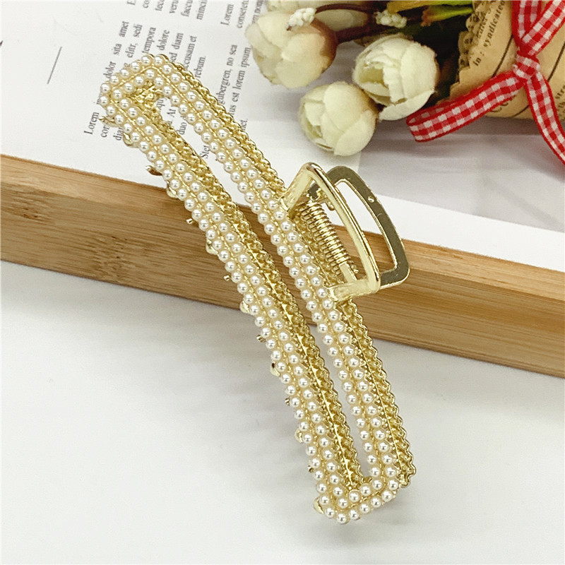 双层珍珠钻发饰流行时尚女生甜美大号细水钻方形发夹抓夹发抓