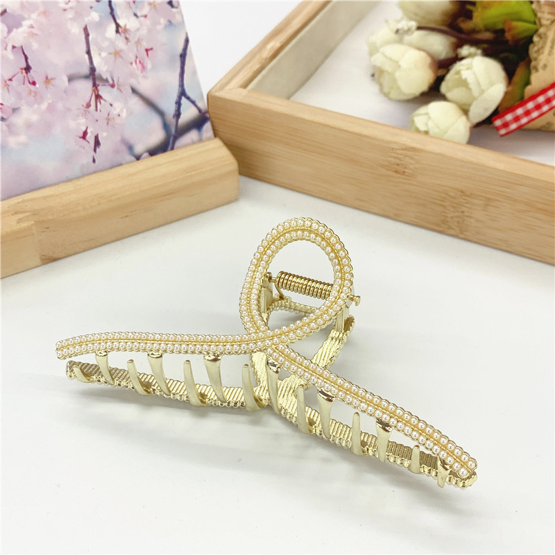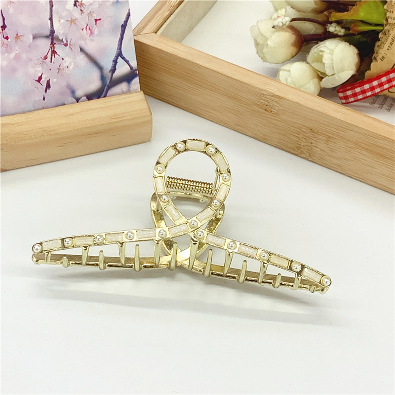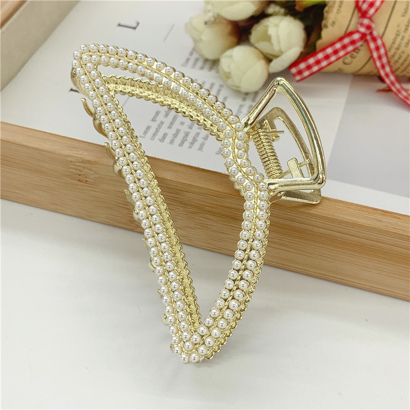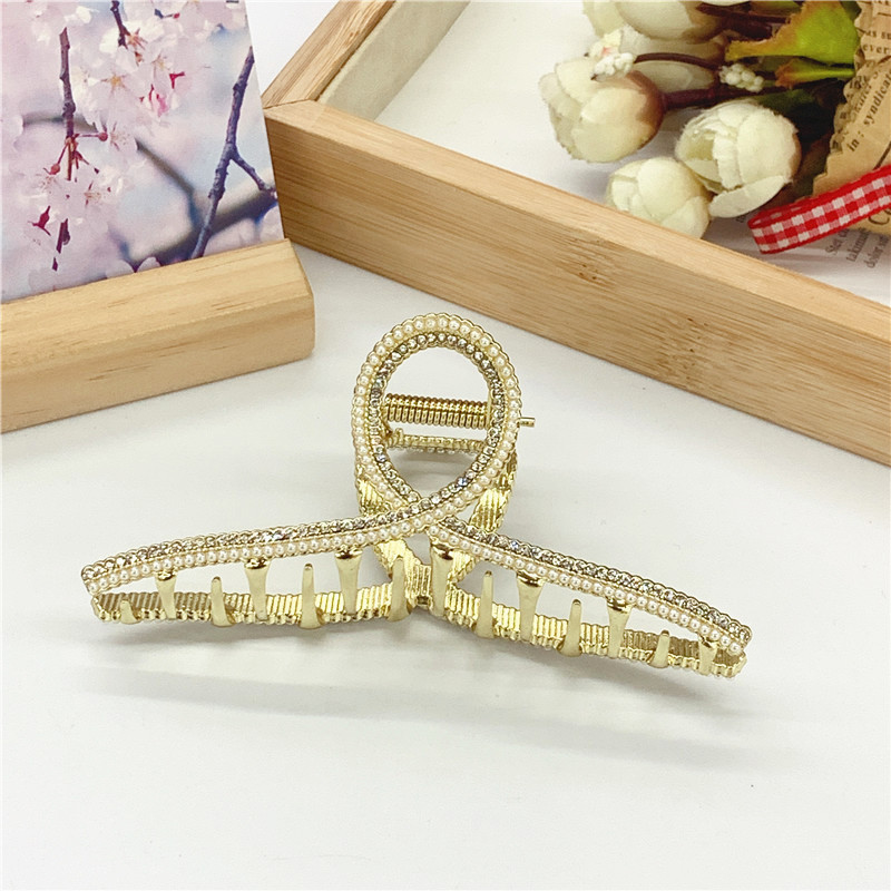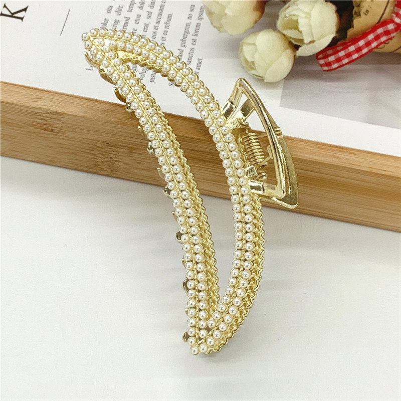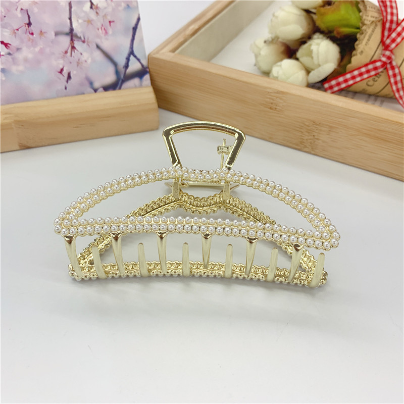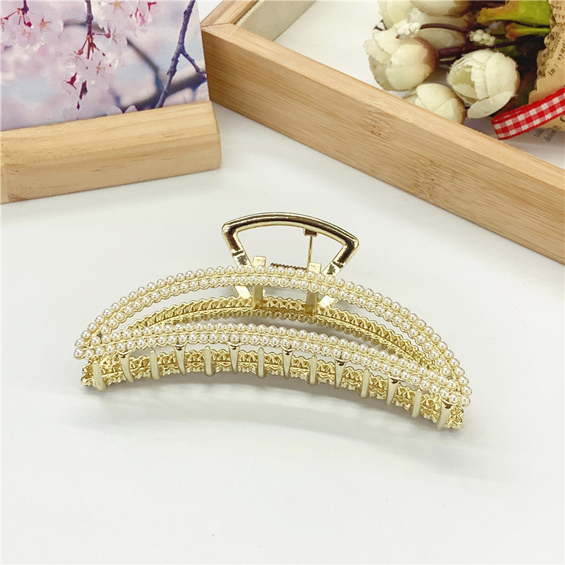 双层珍珠钻发饰流行时尚女生甜美大号细水钻方形发夹抓夹发抓