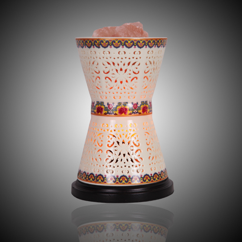JH8812喜马拉雅纯正天然水晶盐灯八斗来财 陶瓷礼品盐灯台灯
