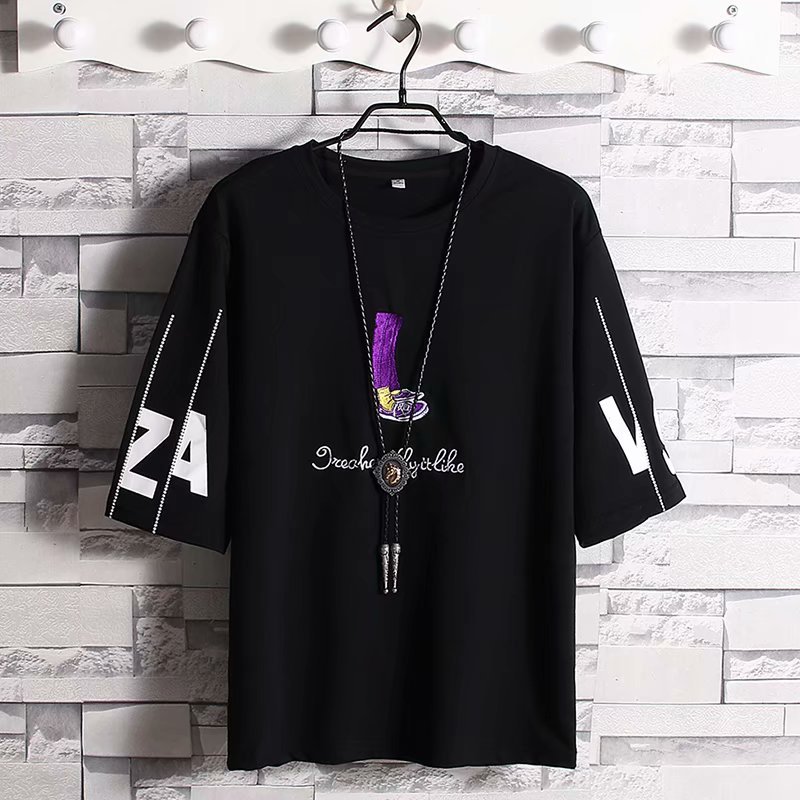 夏季港风短袖t恤五分袖高中学生运动休闲上衣潮流痞帅气精神小伙