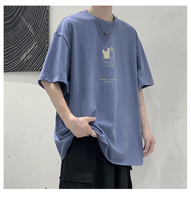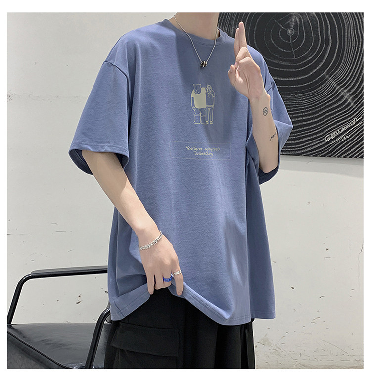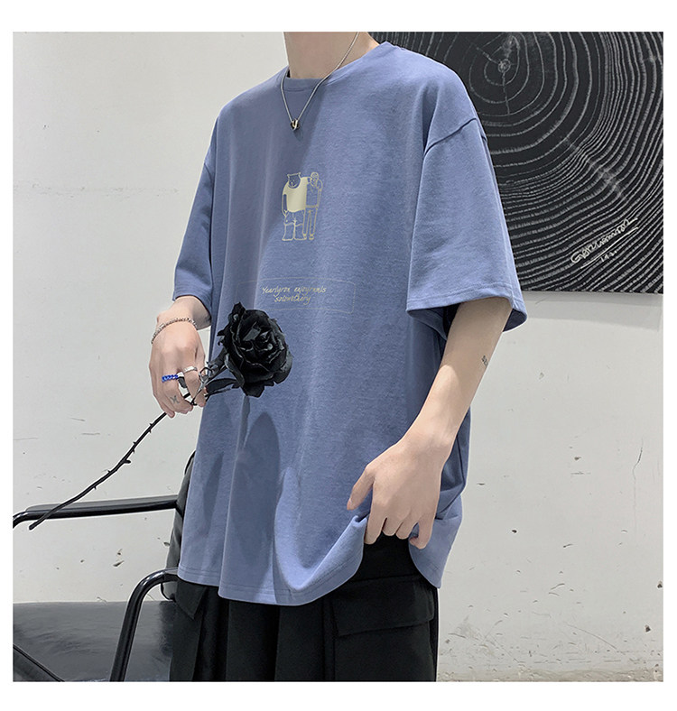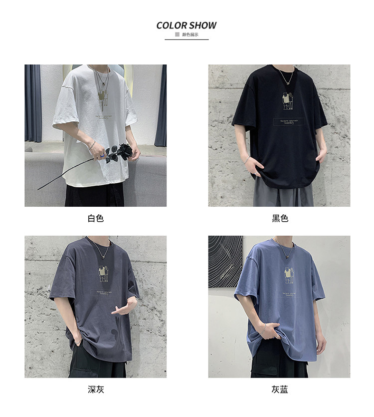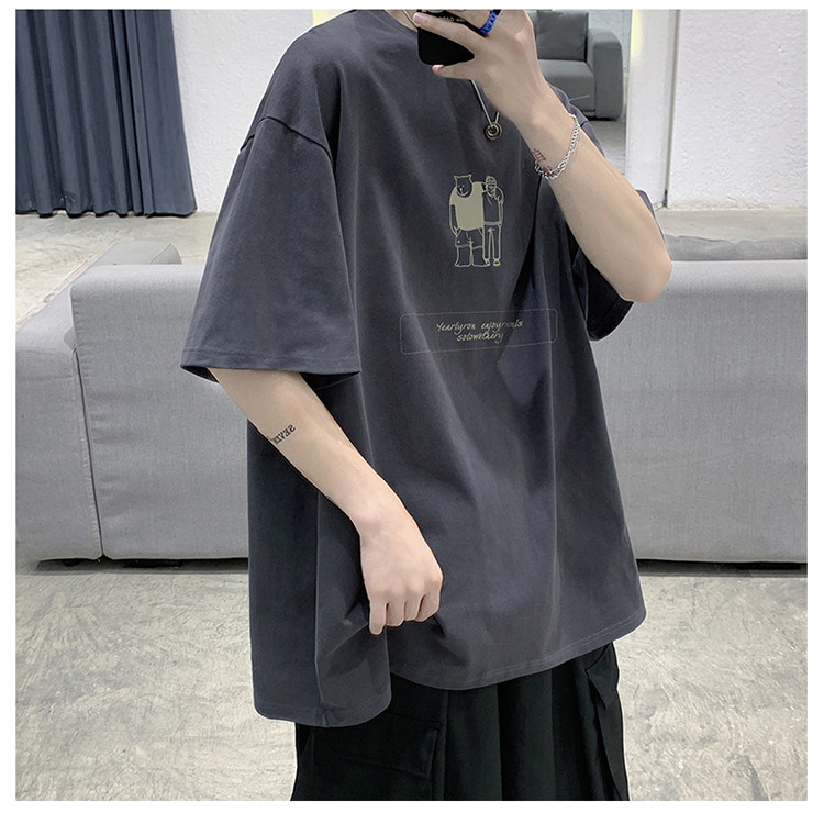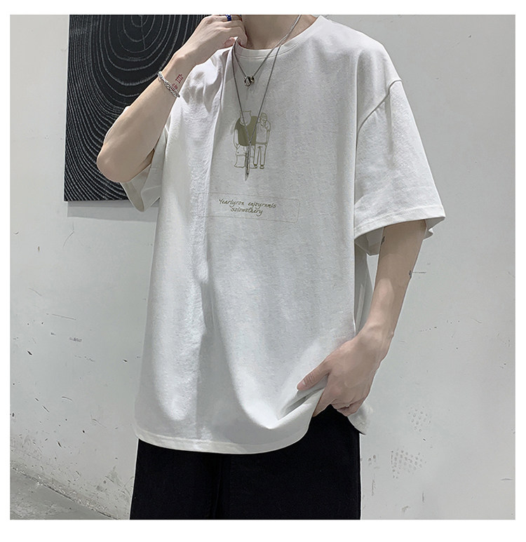 短袖夏季男士t恤韩版潮流宽松半截袖日系体恤潮牌原宿风ins五分袖