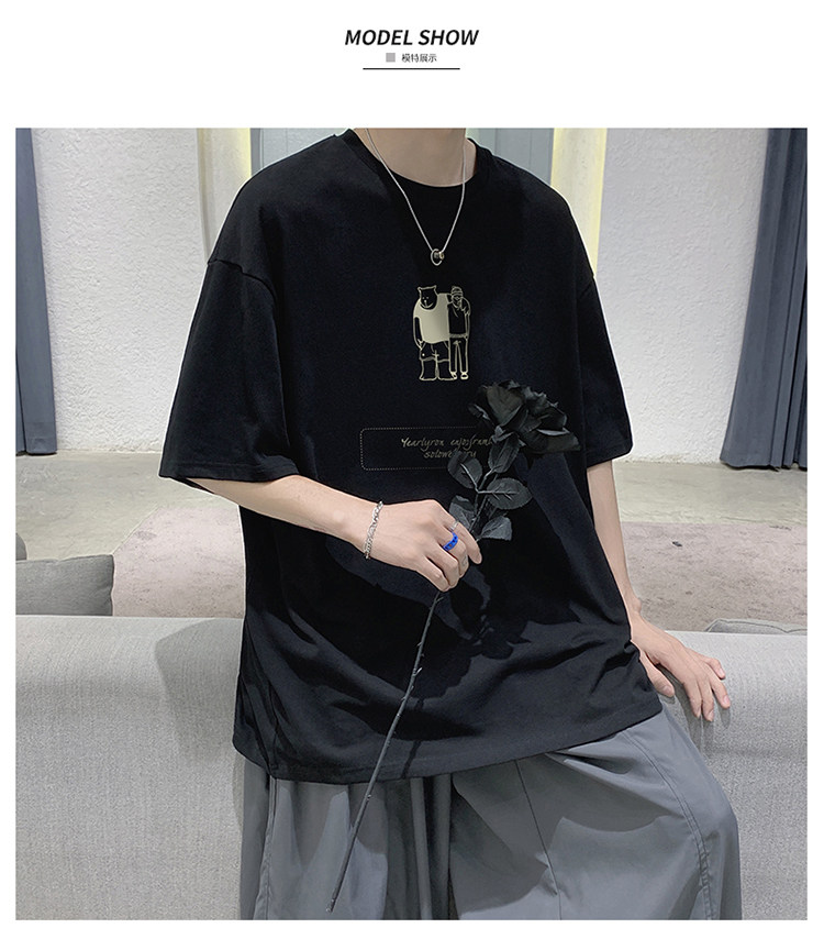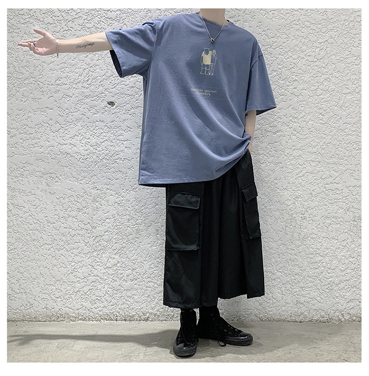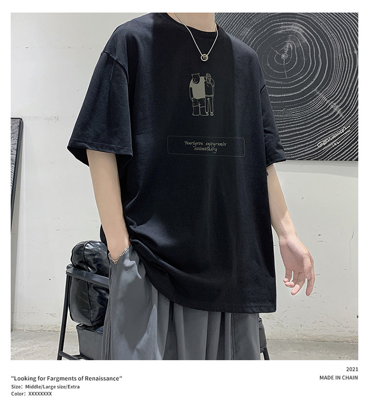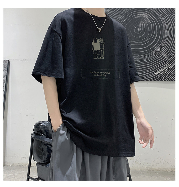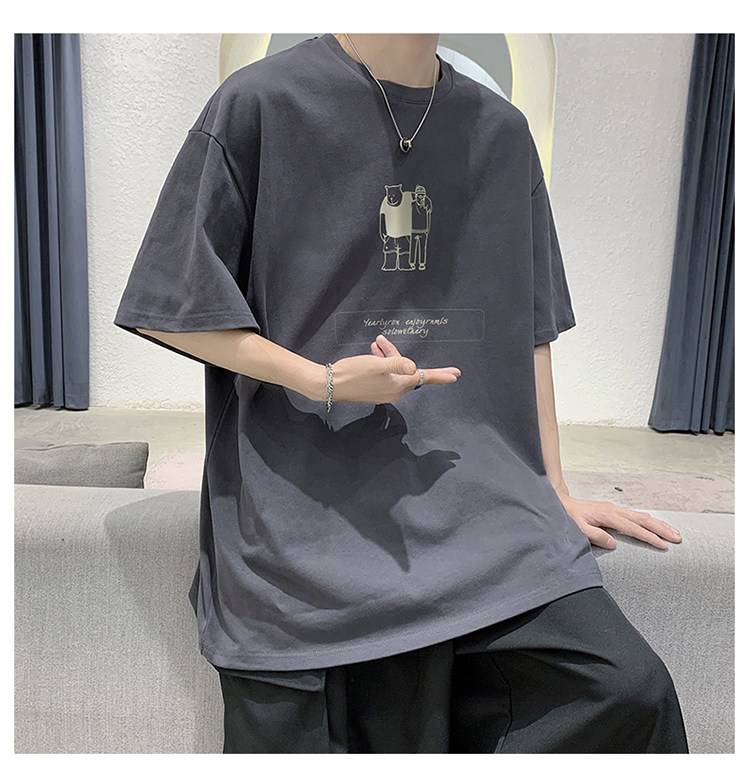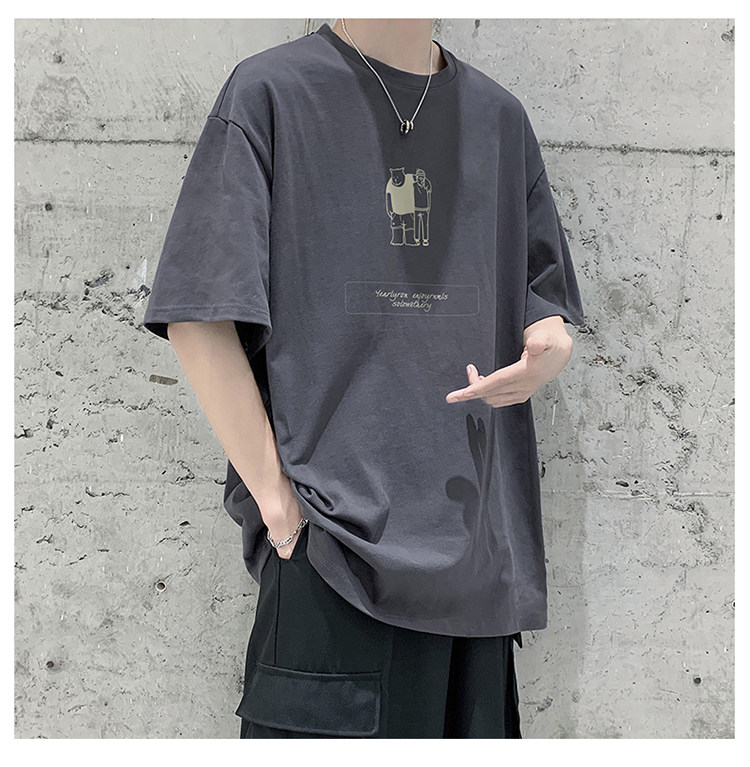 短袖夏季男士t恤韩版潮流宽松半截袖日系体恤潮牌原宿风ins五分袖
