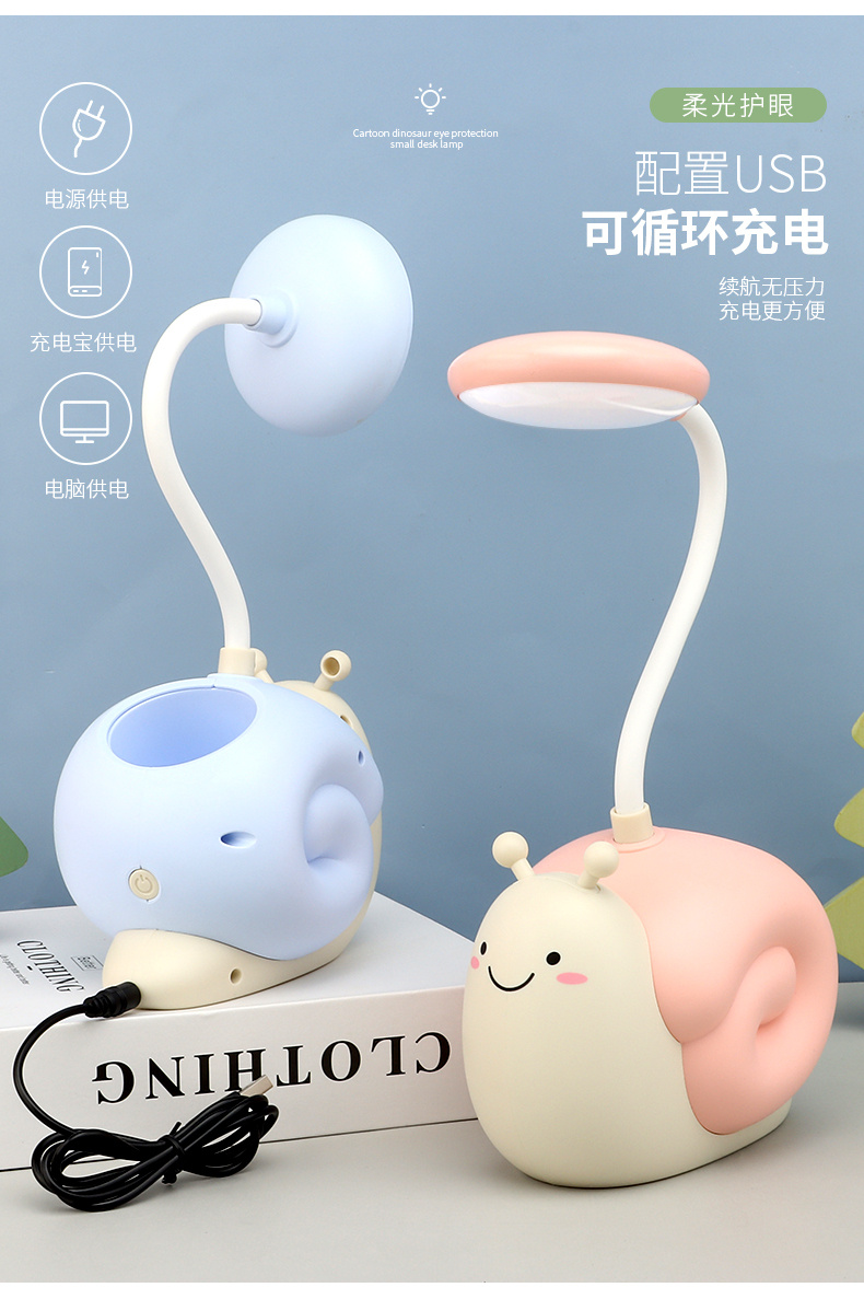 笔筒台灯学习专用蜗牛台灯创意护眼LED笔筒小台灯儿童学生学习床