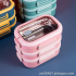 S42-6723不锈钢饭盒带餐具餐盒 学生宿舍成人三层便携手提便当盒