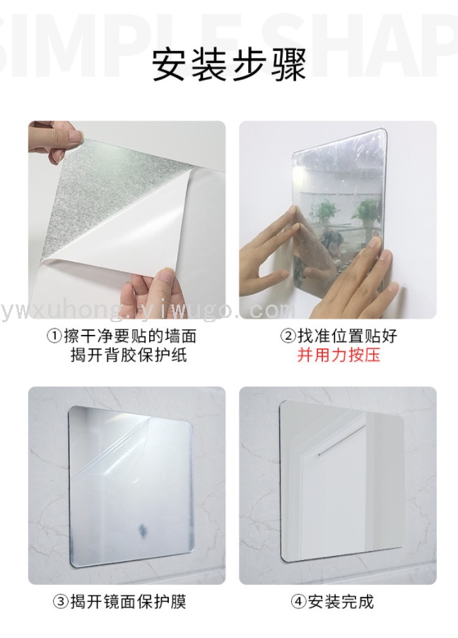 新款亚克力镜贴片 卫生间客厅衣柜卧室自粘镜子墙贴现货