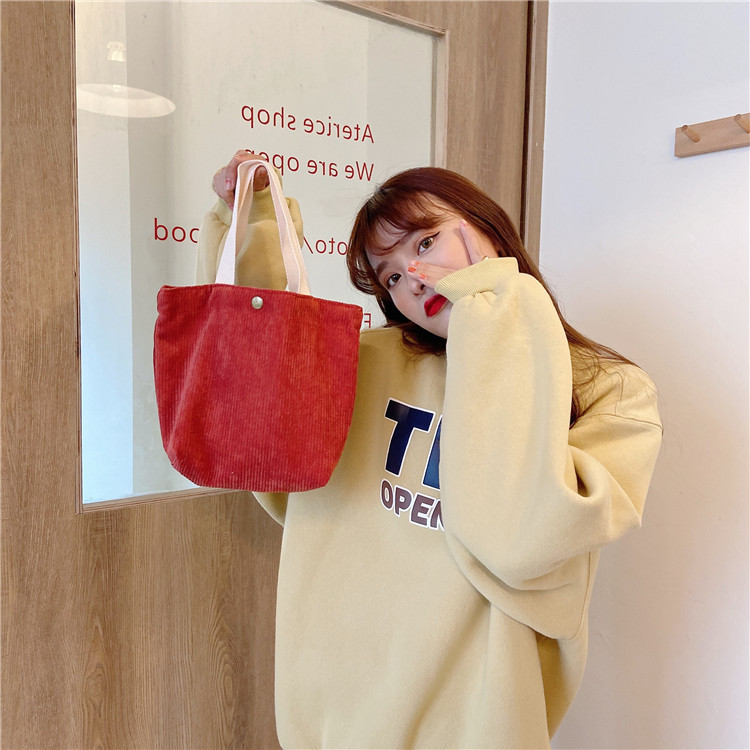 文艺灯芯绒包手提迷你休闲女士小手拎包复古布包便当包