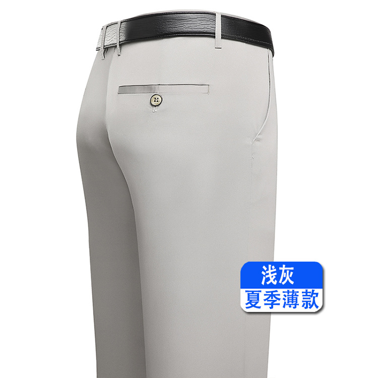 春夏季薄款天丝男士中老年人休闲裤宽松直筒高腰长裤西裤弹力长裤