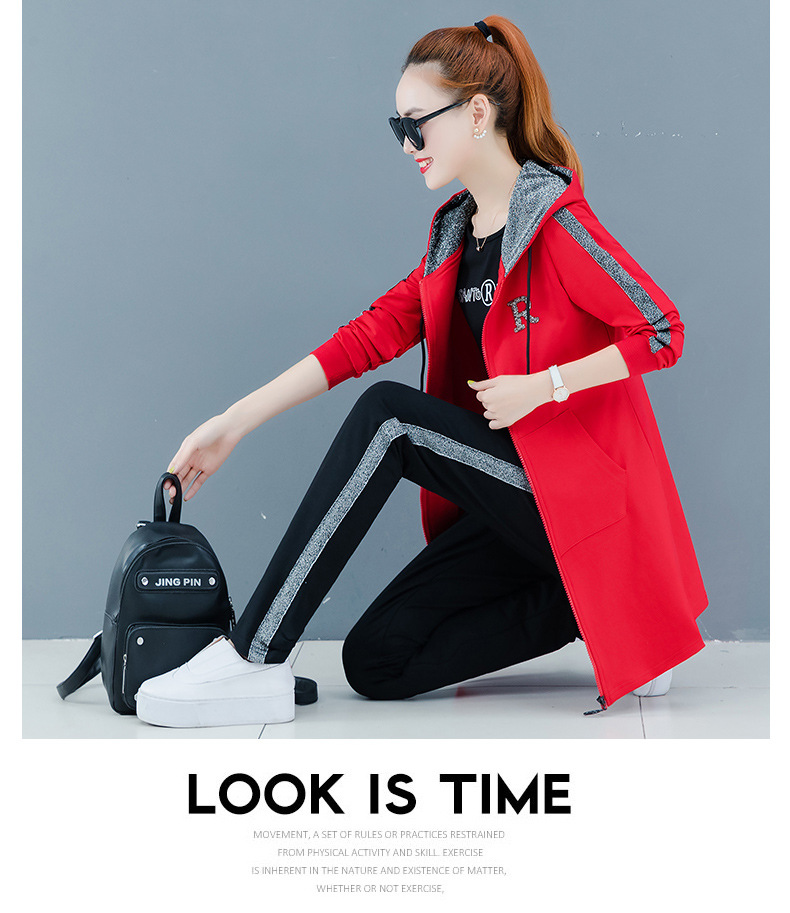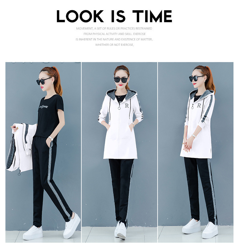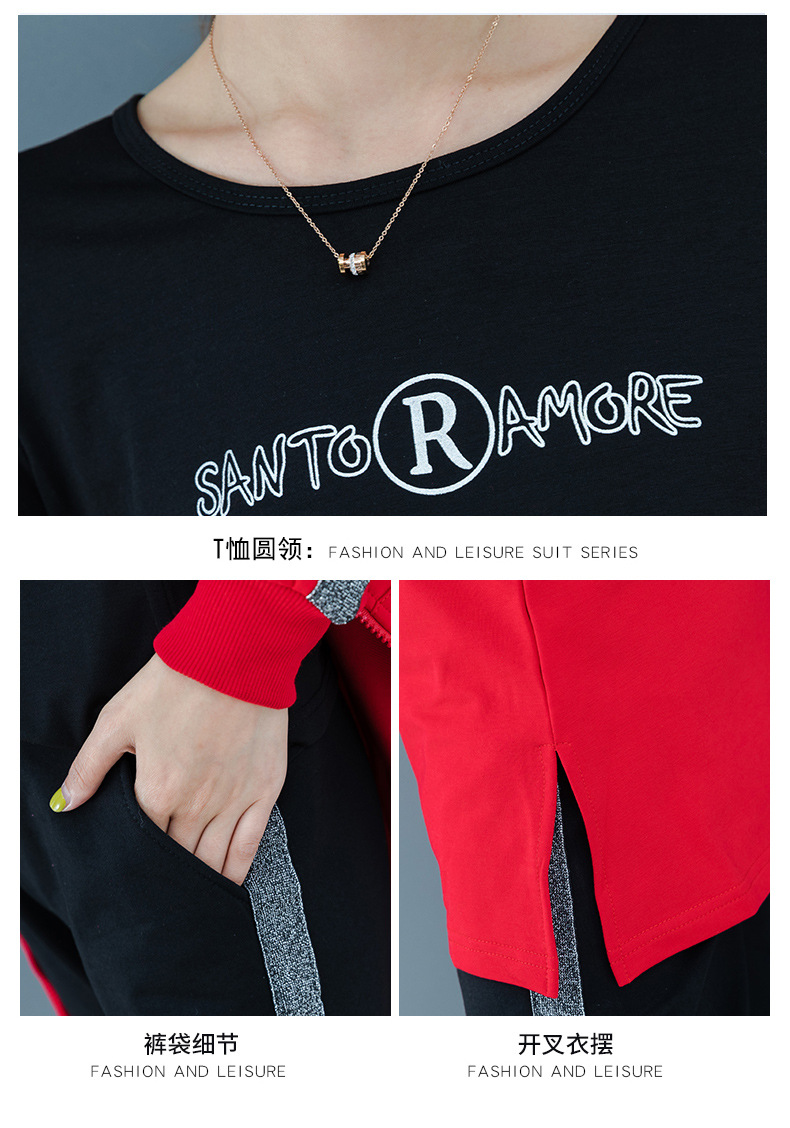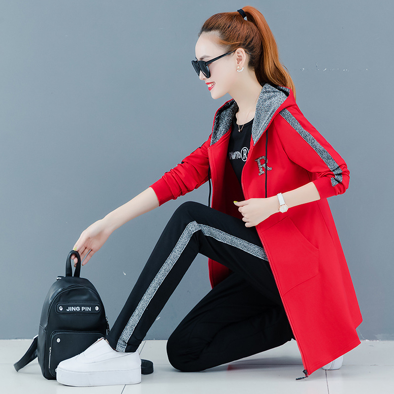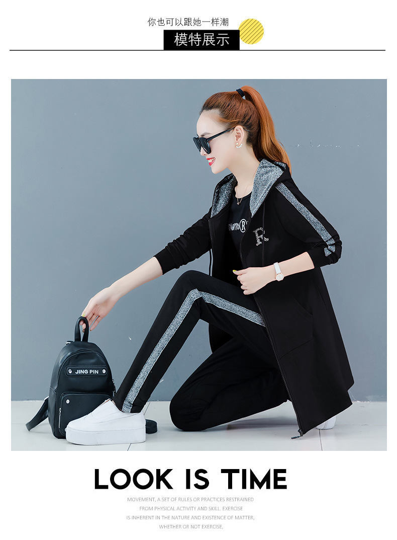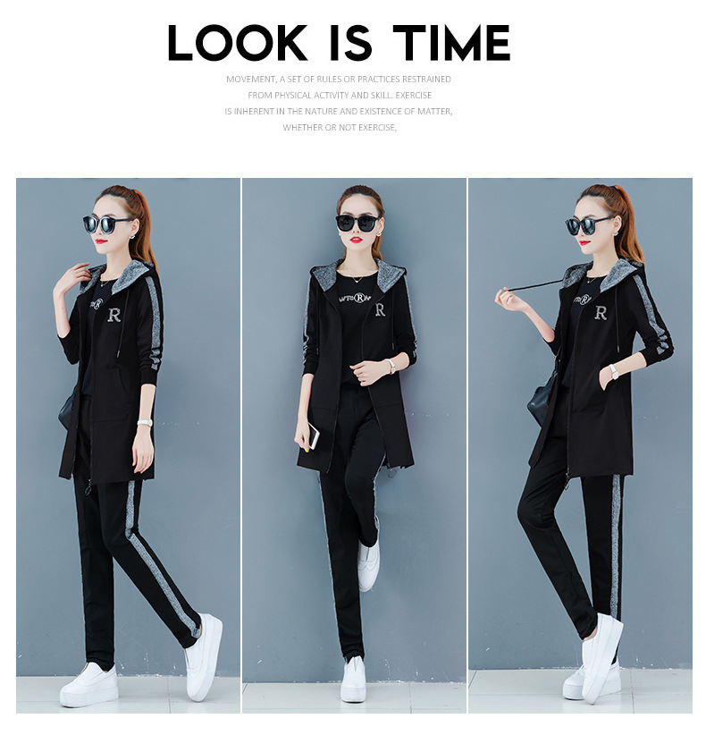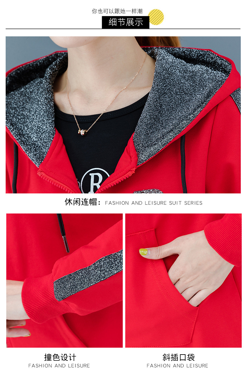 运动套装女春秋季宽松时尚卫衣三件套大码长袖跑步休闲服