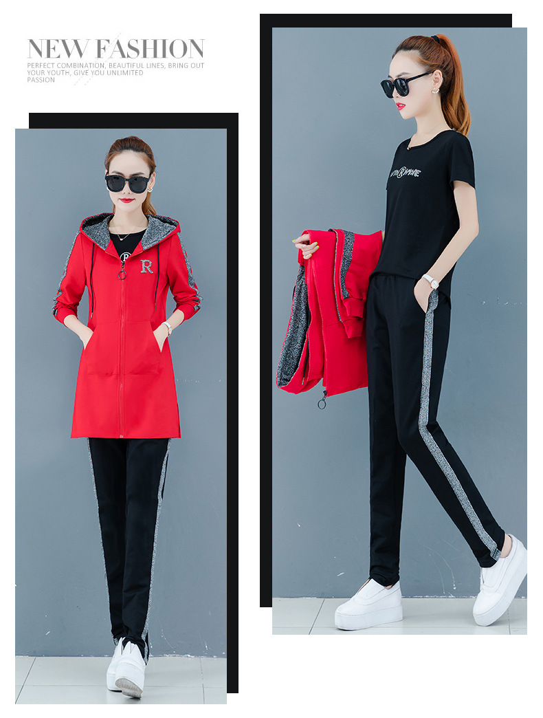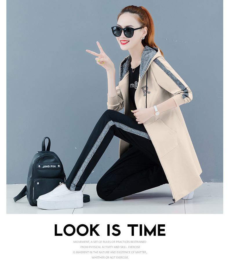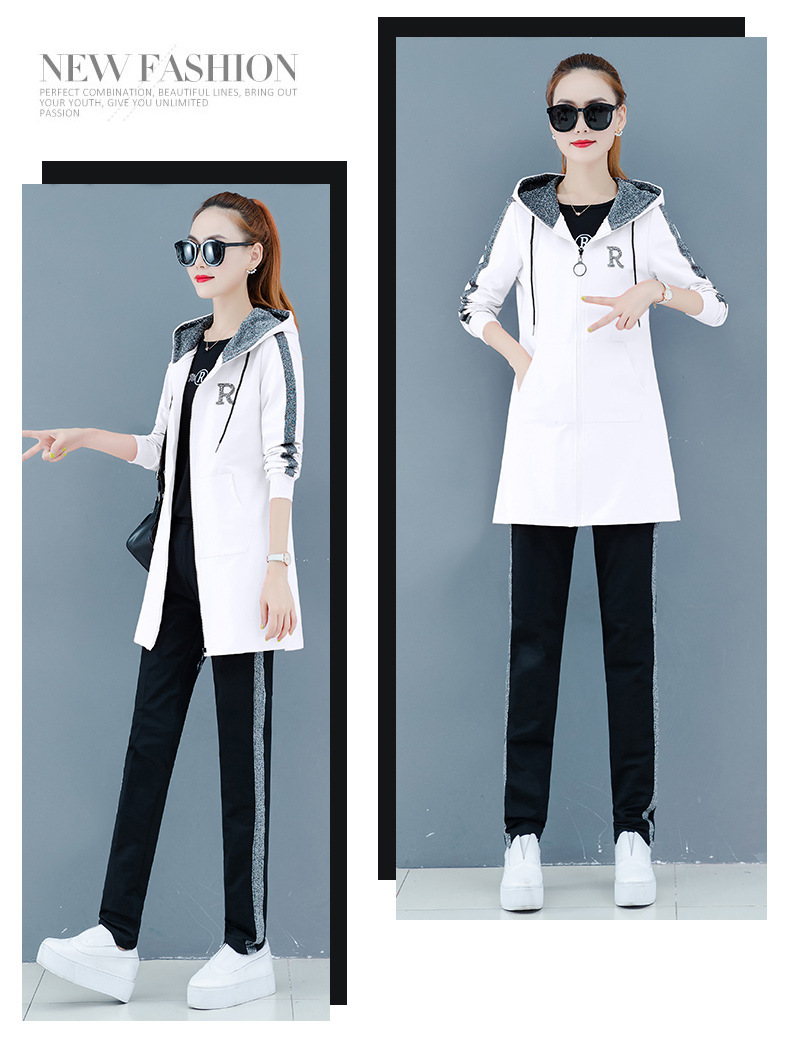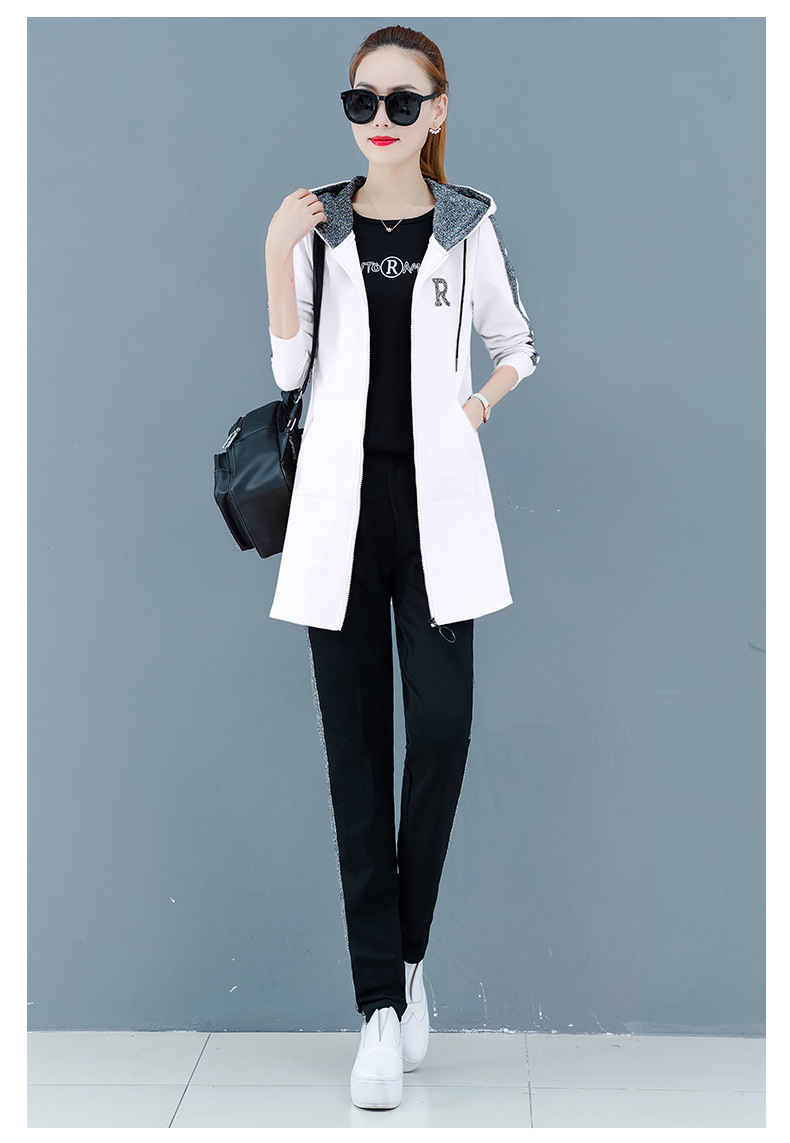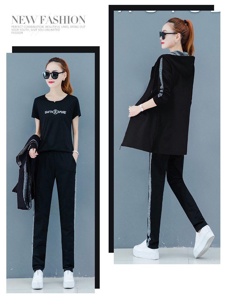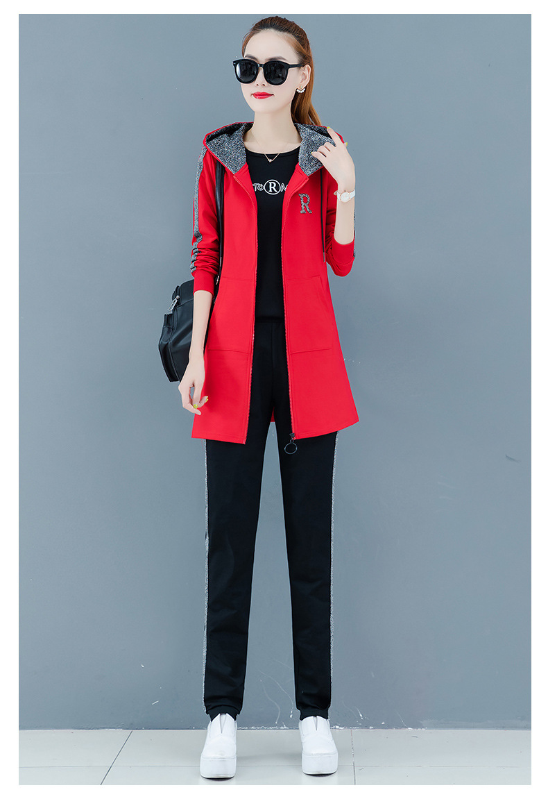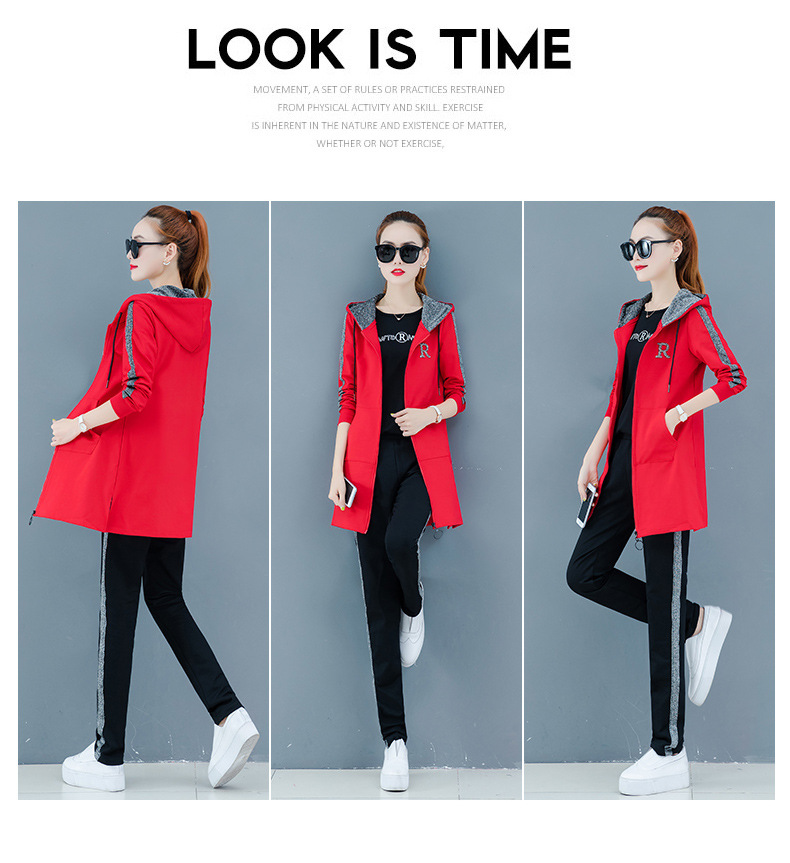 运动套装女春秋季宽松时尚卫衣三件套大码长袖跑步休闲服