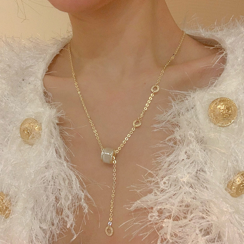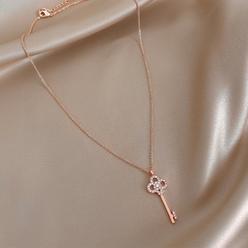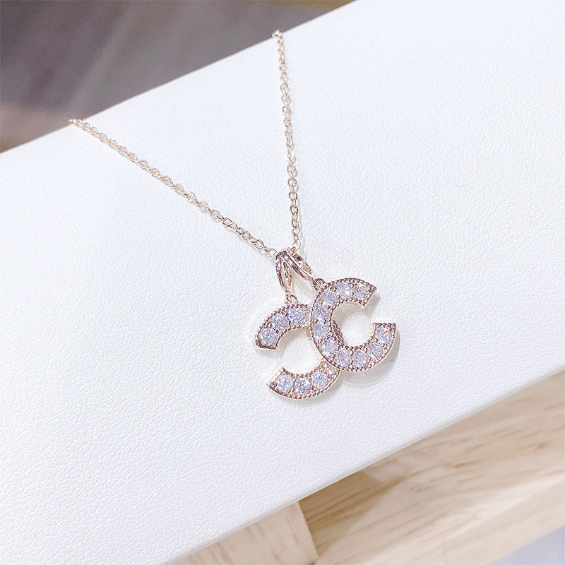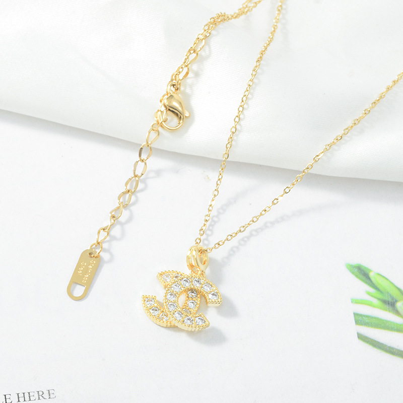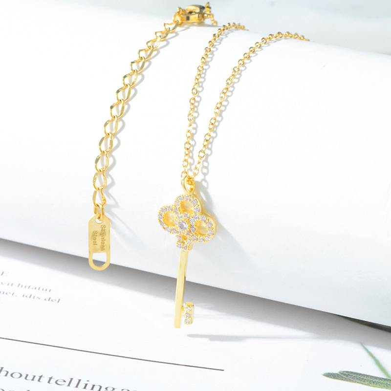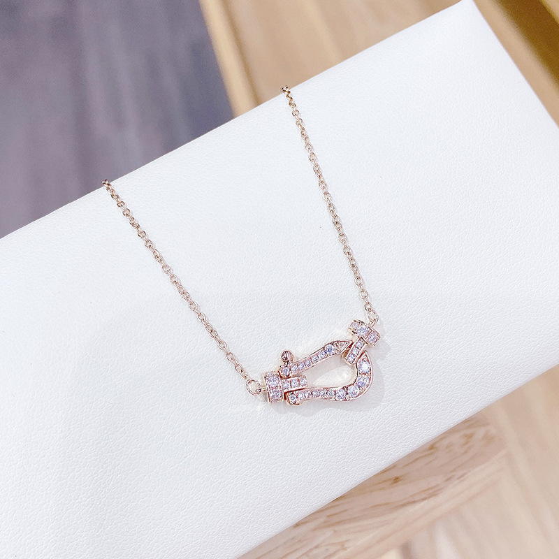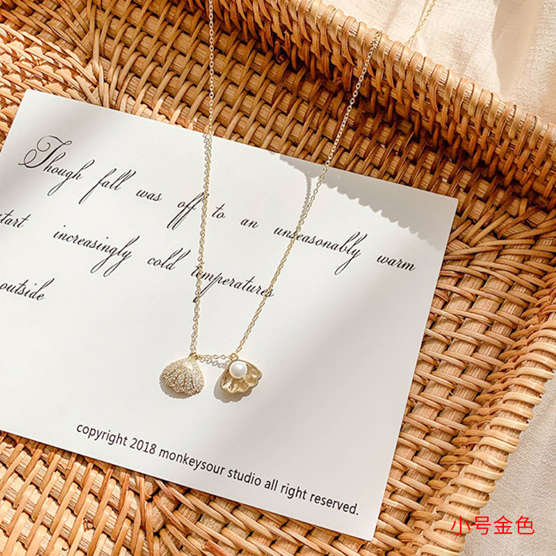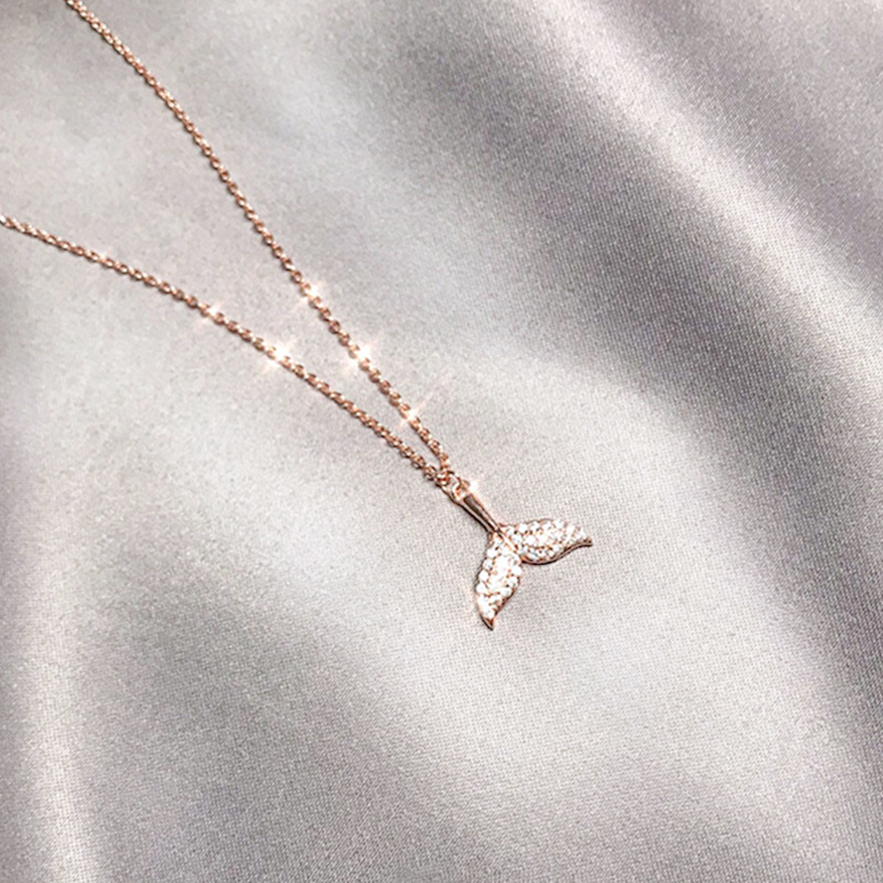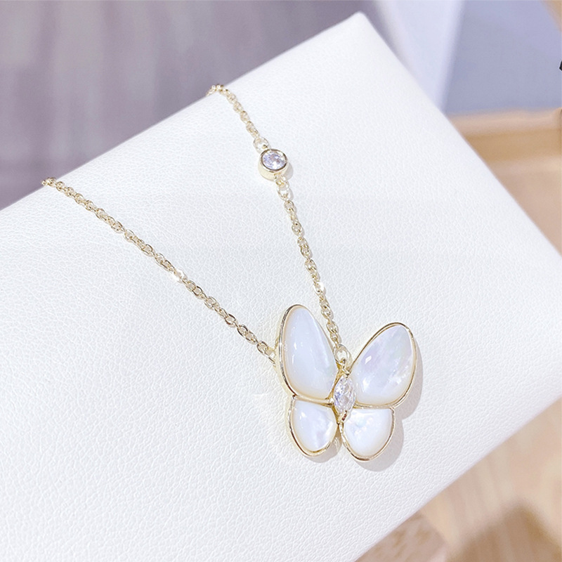 韩版时尚镀真金项链女微镶锆石鱼尾蝴蝶结贝壳锁骨链饰品源头工厂