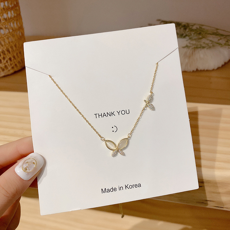 小众蝴蝶微镶锆石钛钢项链超仙个性优雅气质锁骨链女项饰