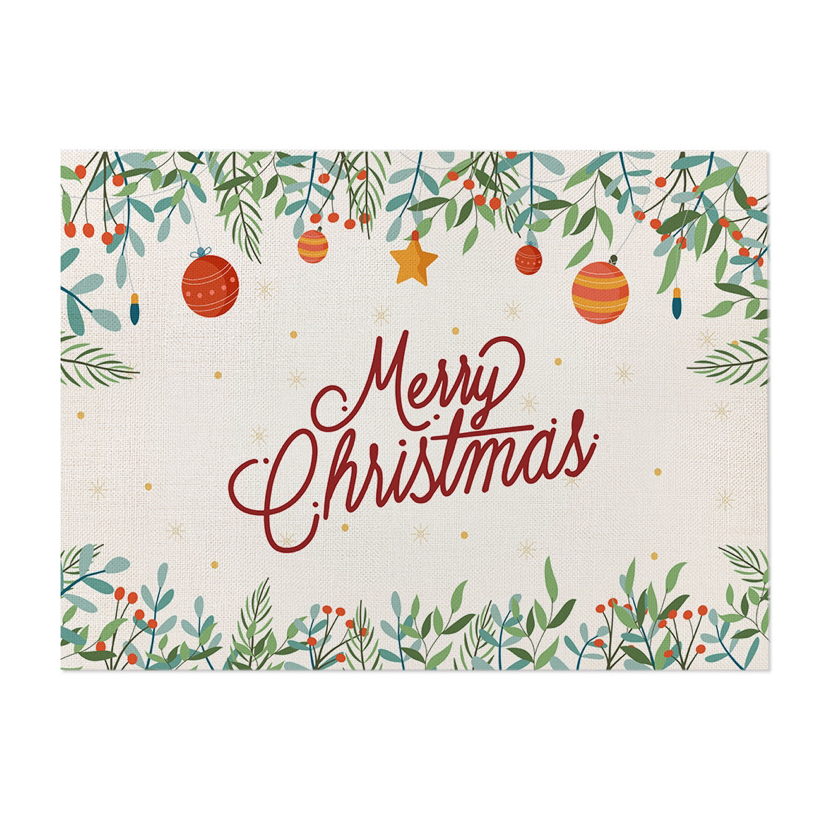 2022圣诞节装饰餐垫绿植印花系列棉麻防水长方形西餐垫餐厅隔热垫