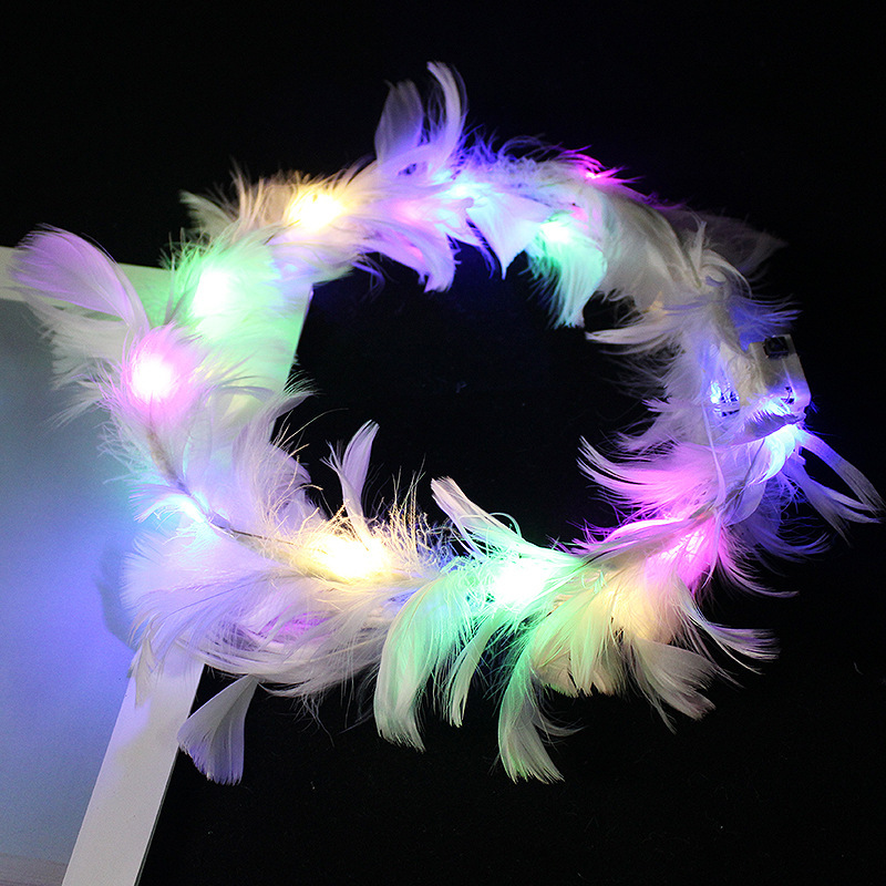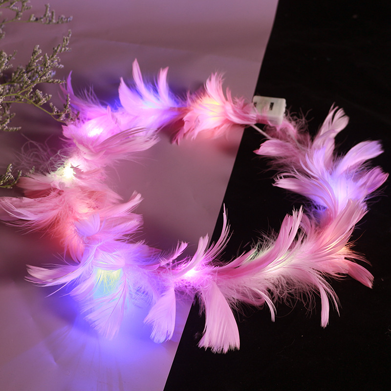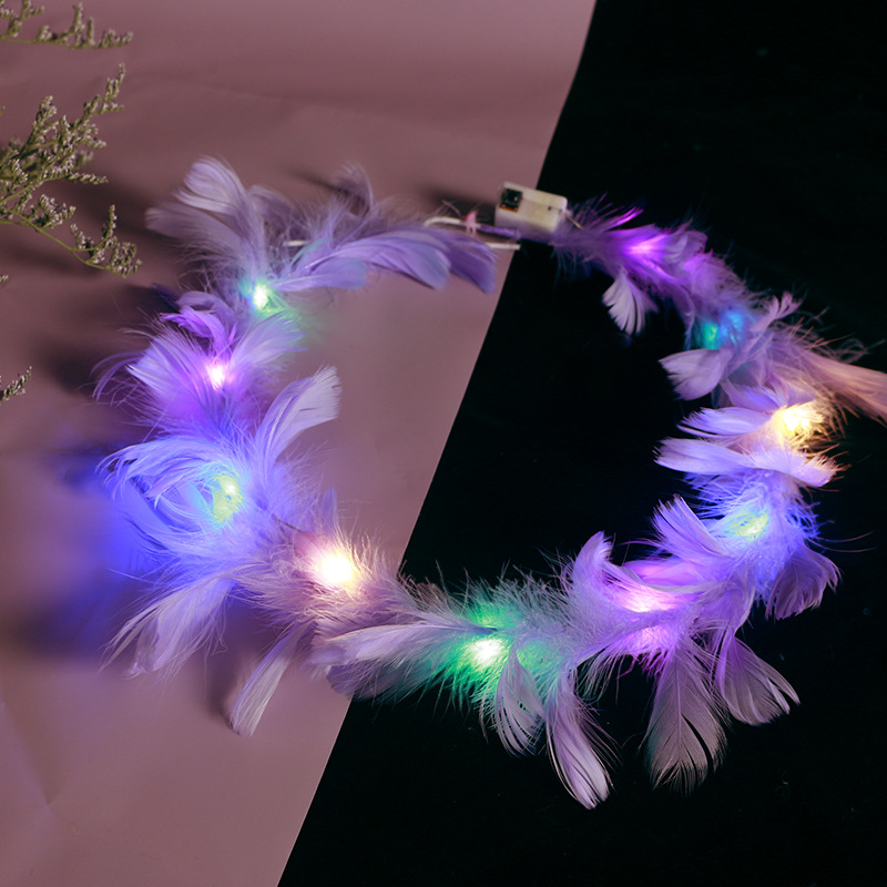 新款仙女发光羽毛花环兔耳朵网红夜市地推闪光头饰地推扫码礼品