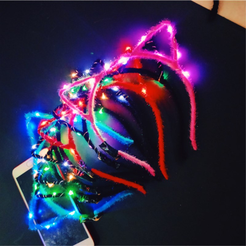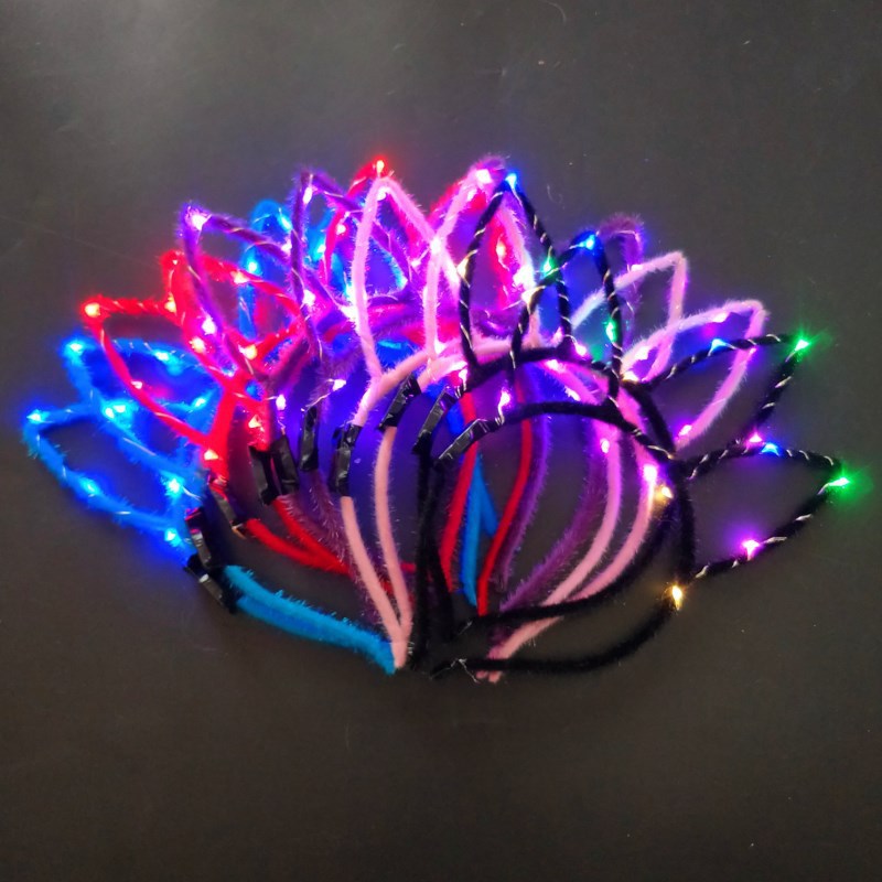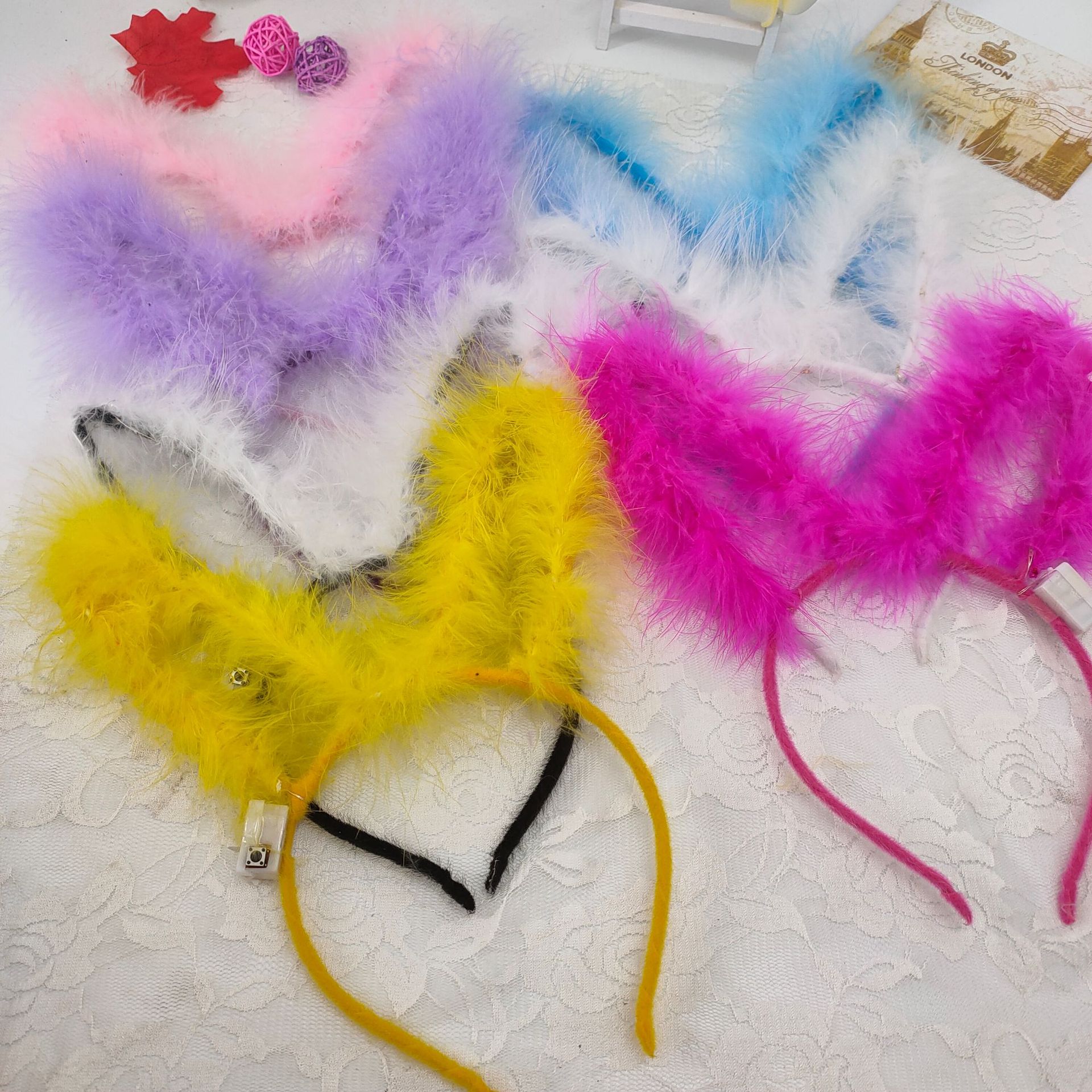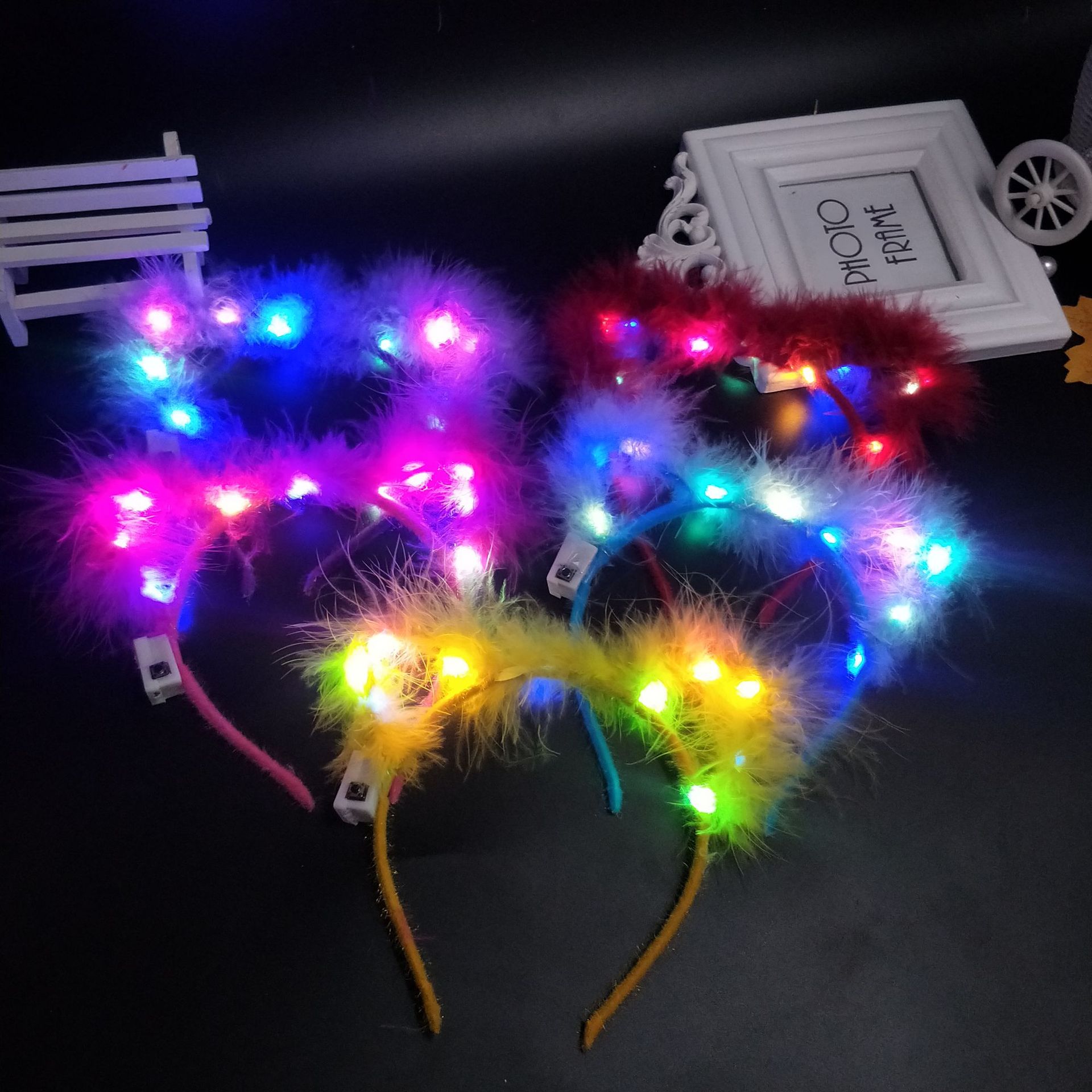 新款发光头饰猫耳朵10颗灯羽毛发光玩具花环发箍地摊夜市厂家热卖