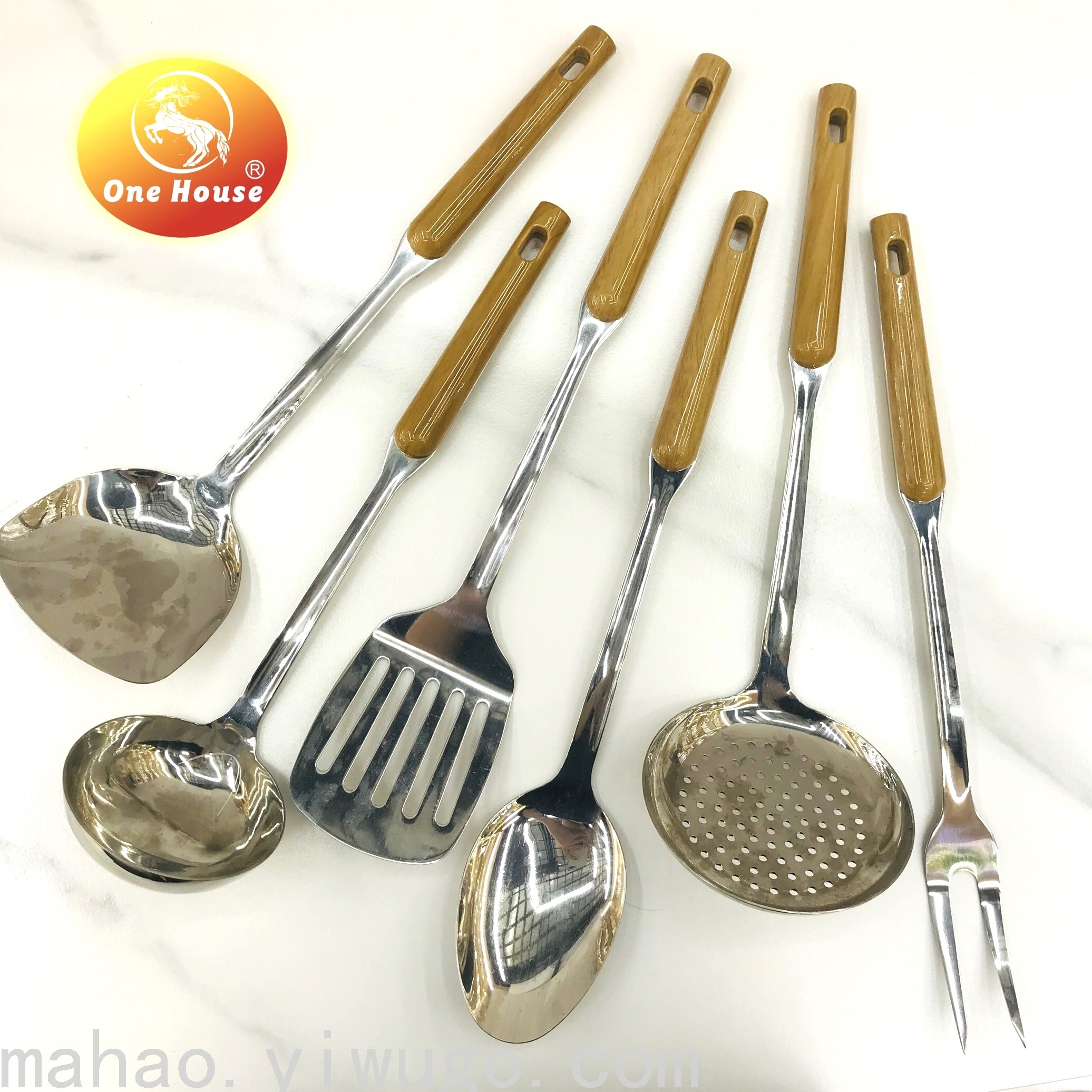 圆柄木纹厨具七件套