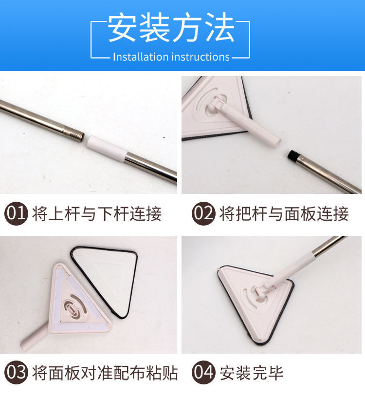 家用三角操玻璃器伸缩连接杆墙角地板天花板干湿两用清洁神器