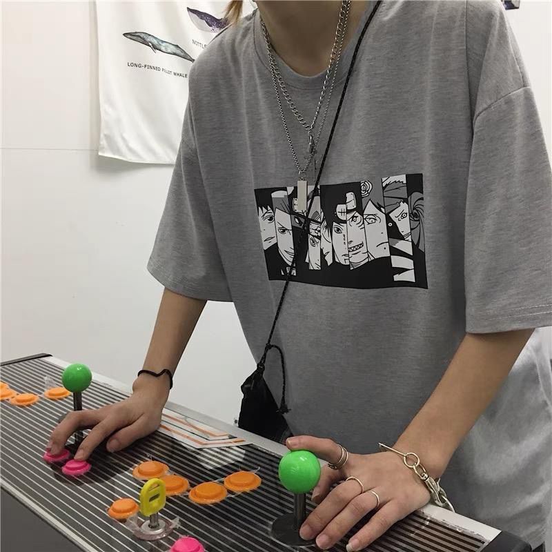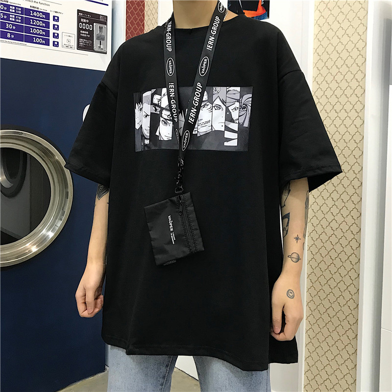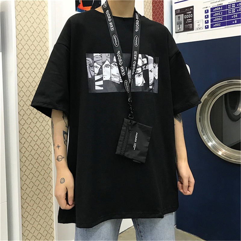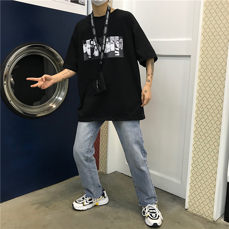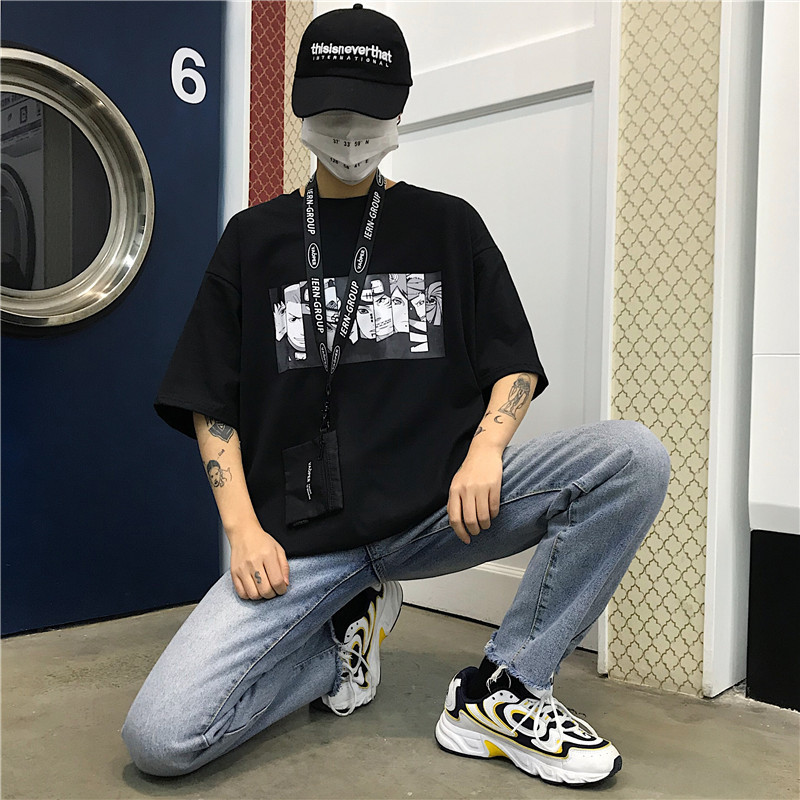 夏季时尚潮流情侣装ins外贸新款复古宽松卡通动漫短袖t恤男女上衣