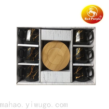 亚光黑几何杯6杯+Y平碟 -乱纹系列