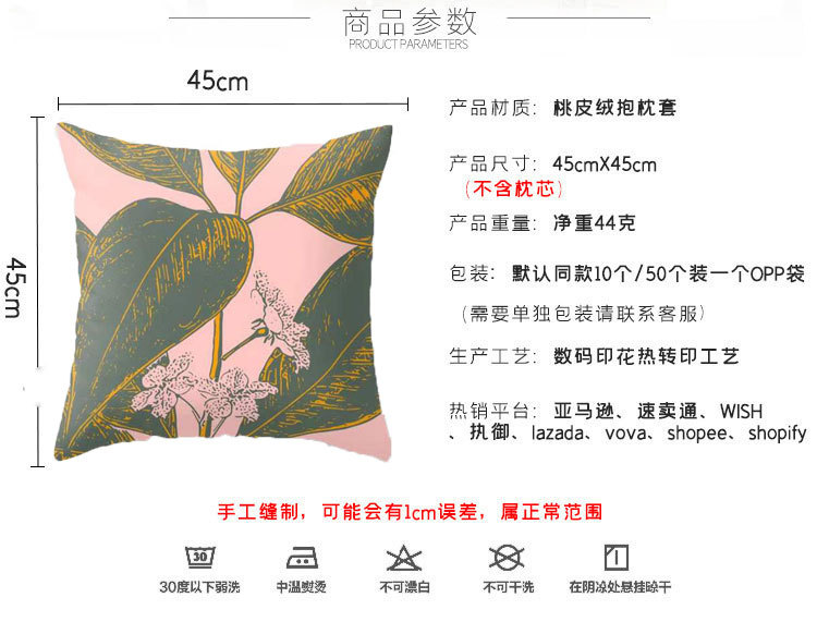 ins几何花卉抱枕套亚马逊家居用品2022北欧桃皮绒靠枕套沙发靠垫