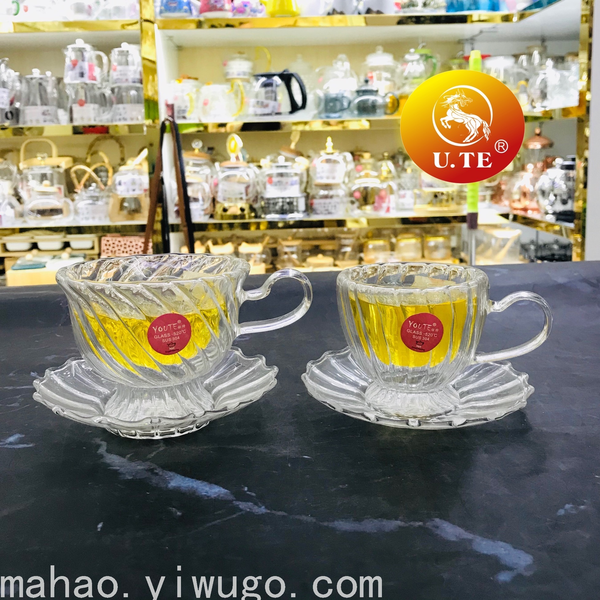 条纹玻璃杯碟