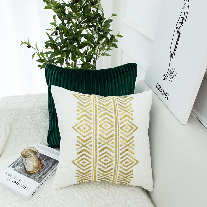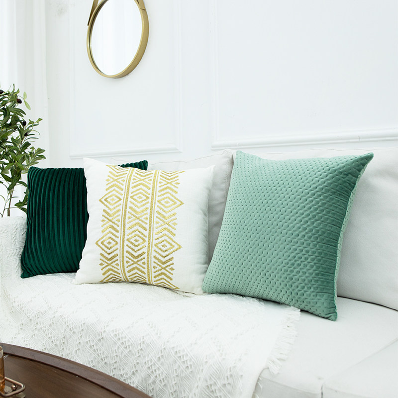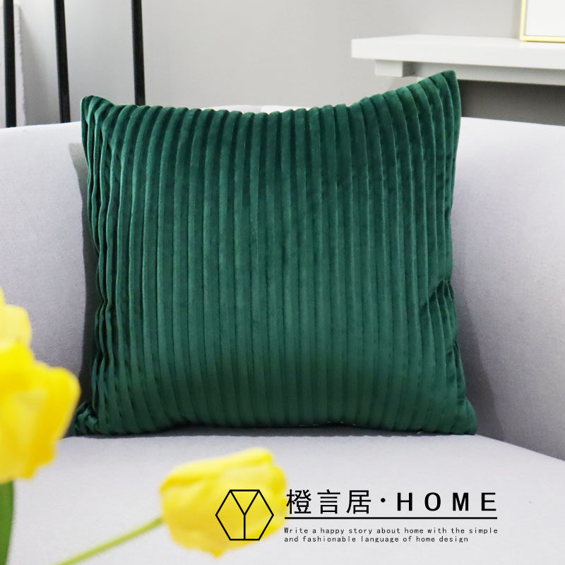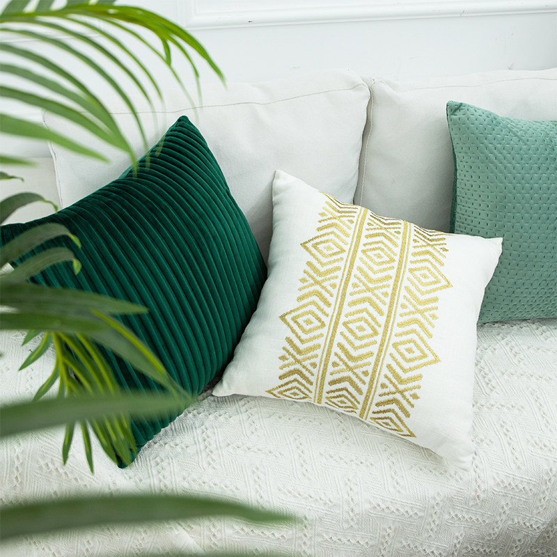 绿色轻奢抱枕刺绣棉麻靠枕手工褶立体绒布抱枕套样板房沙发靠垫