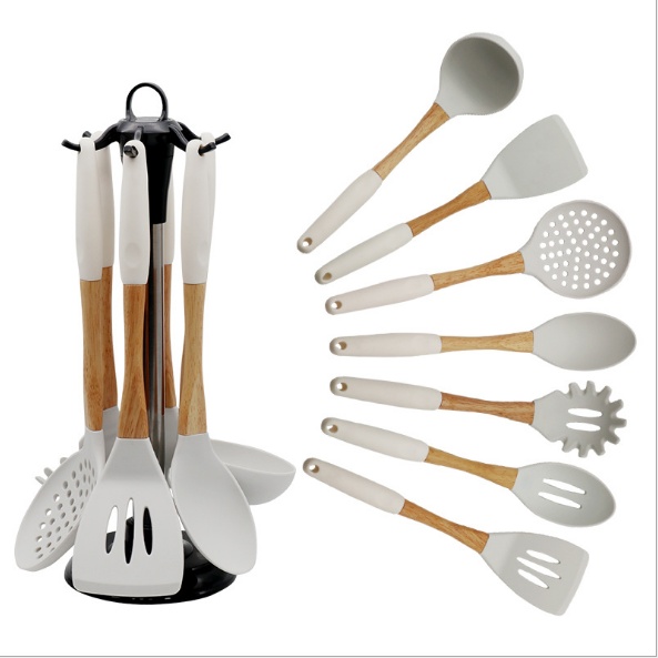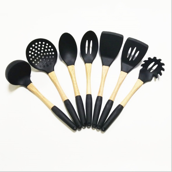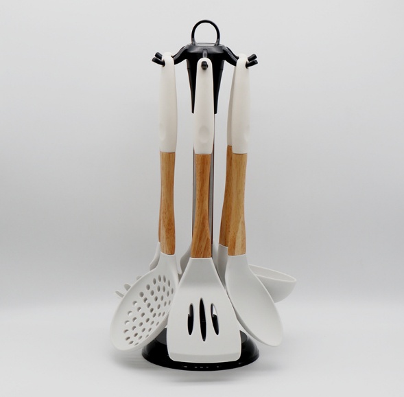 硅胶厨具套装木柄烹饪勺铲6件套