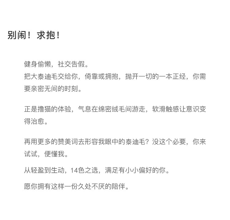 \ \面料:环保泰迪绒纤维 填芯:原生PP棉
