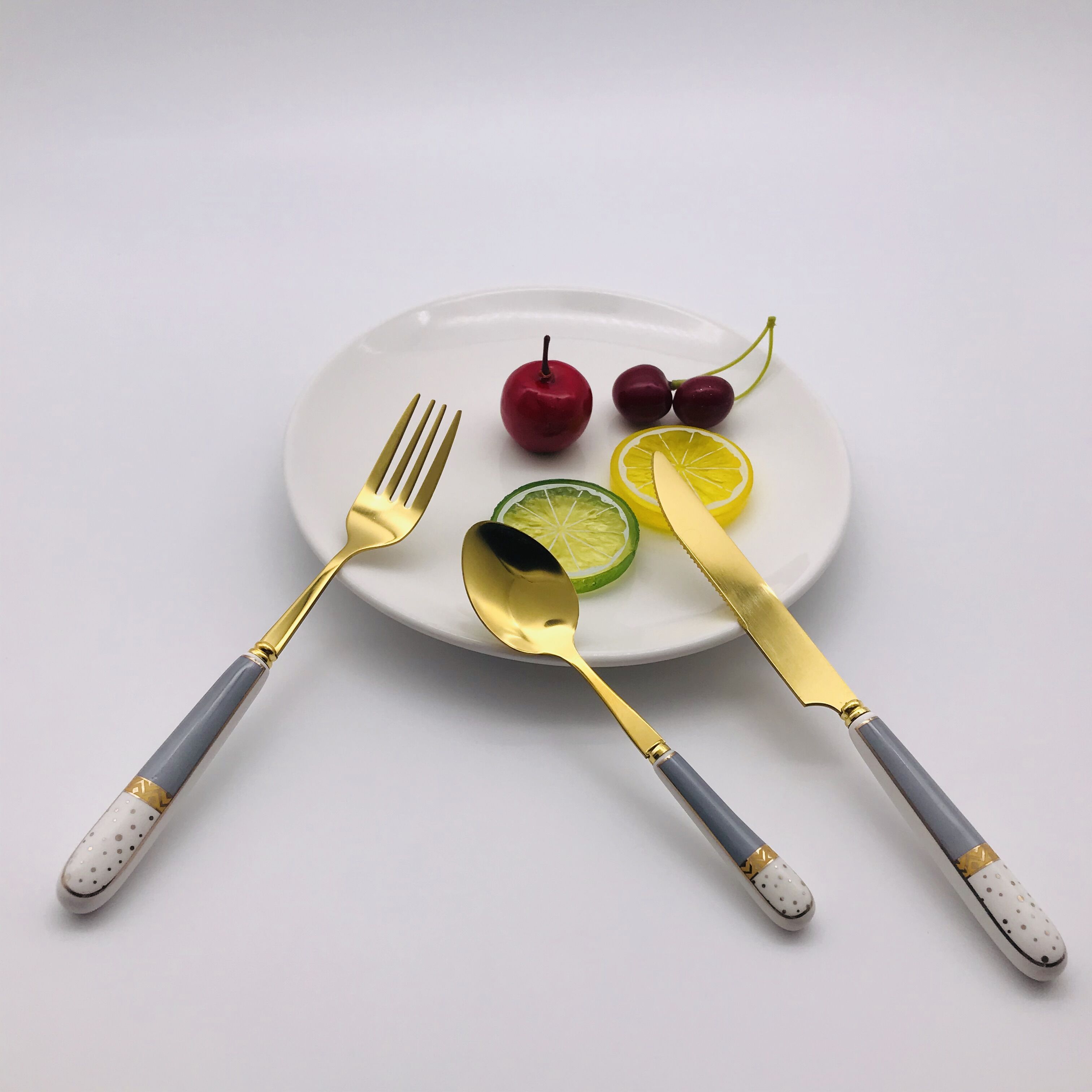 不锈钢陶瓷柄北欧西餐餐具套装 家用西式带架子盒装刀叉勺礼品