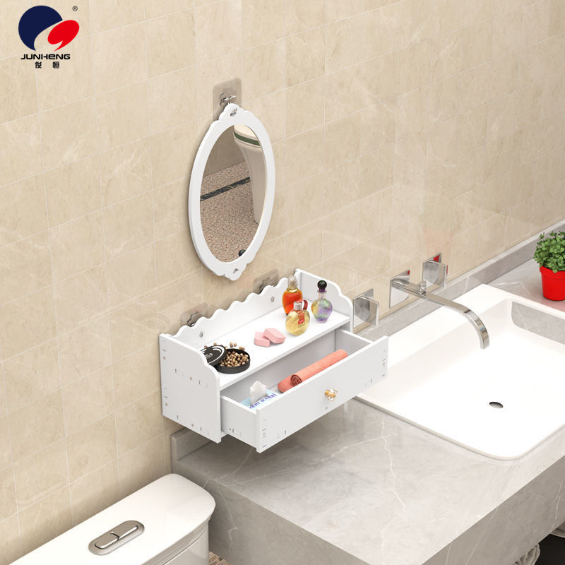 卫生间浴室镜子带置物架小户型洗手间厕所洗漱台圆镜挂免打孔