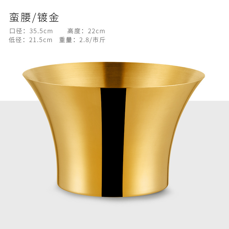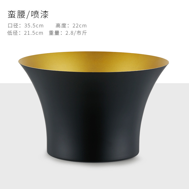 不锈钢香槟盆 北欧冰桶 金色沙律盆香槟桶啤酒桶元宝黑金款大冰盆