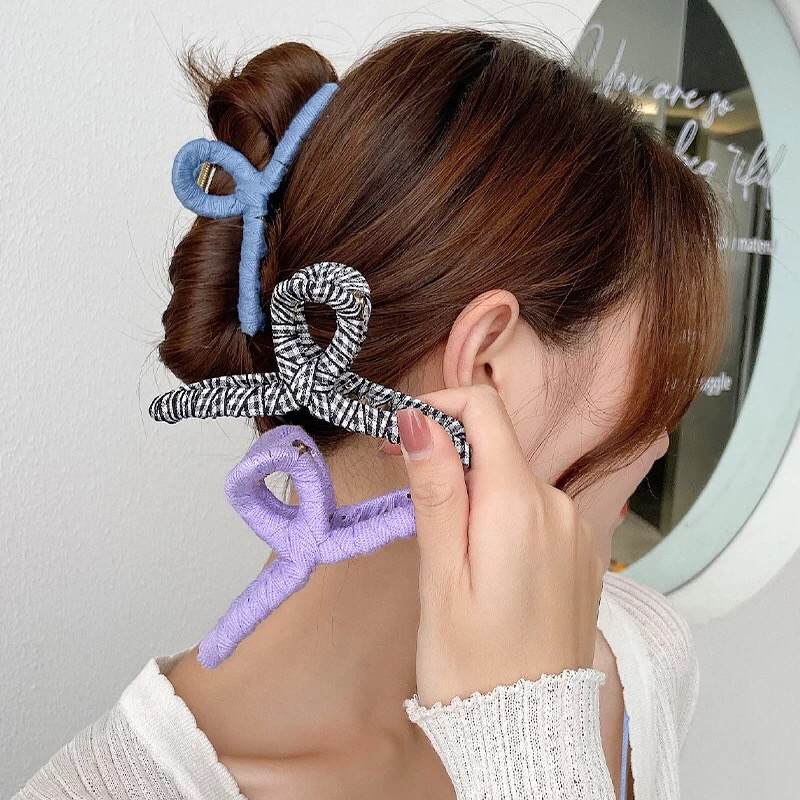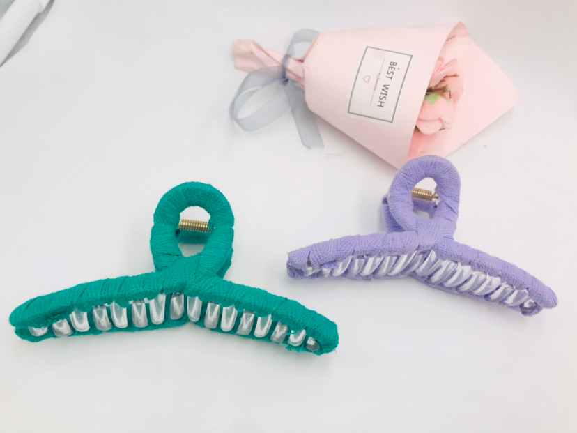 新款纯色包布交叉大抓夹小清新大号带齿后脑勺发抓百搭甜美发夹子