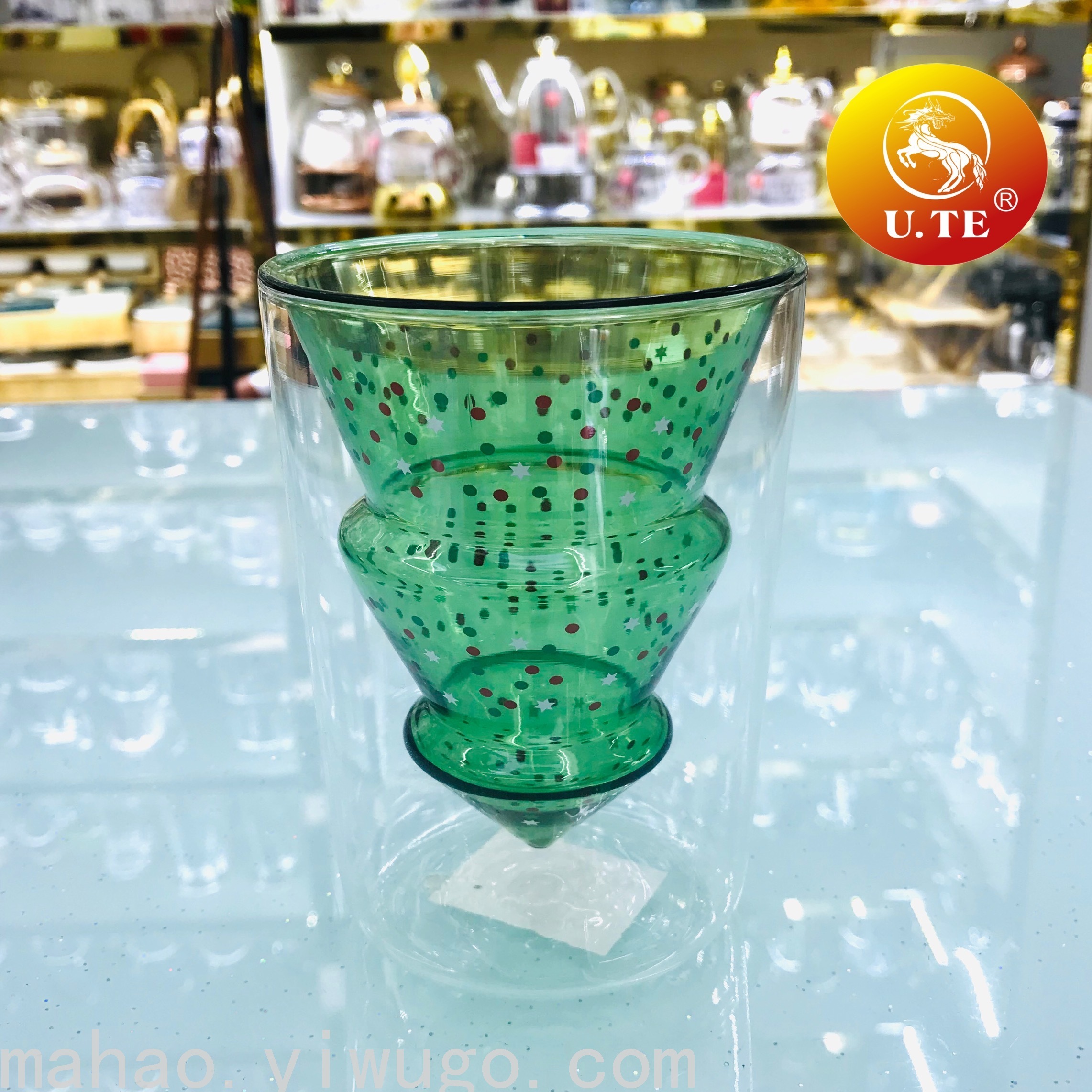 圣诞树双层玻璃杯