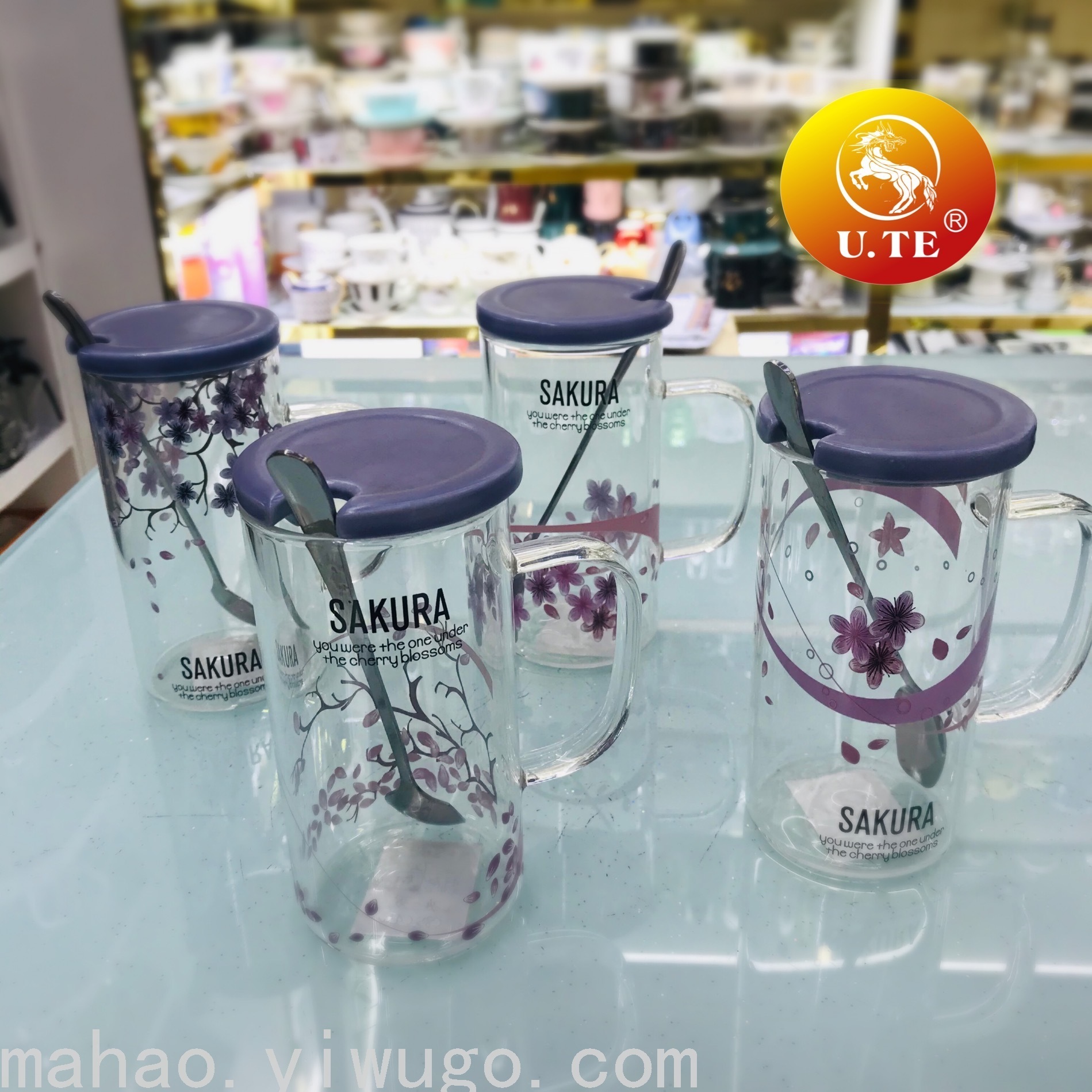 陶瓷盖直筒玻璃马克杯带勺