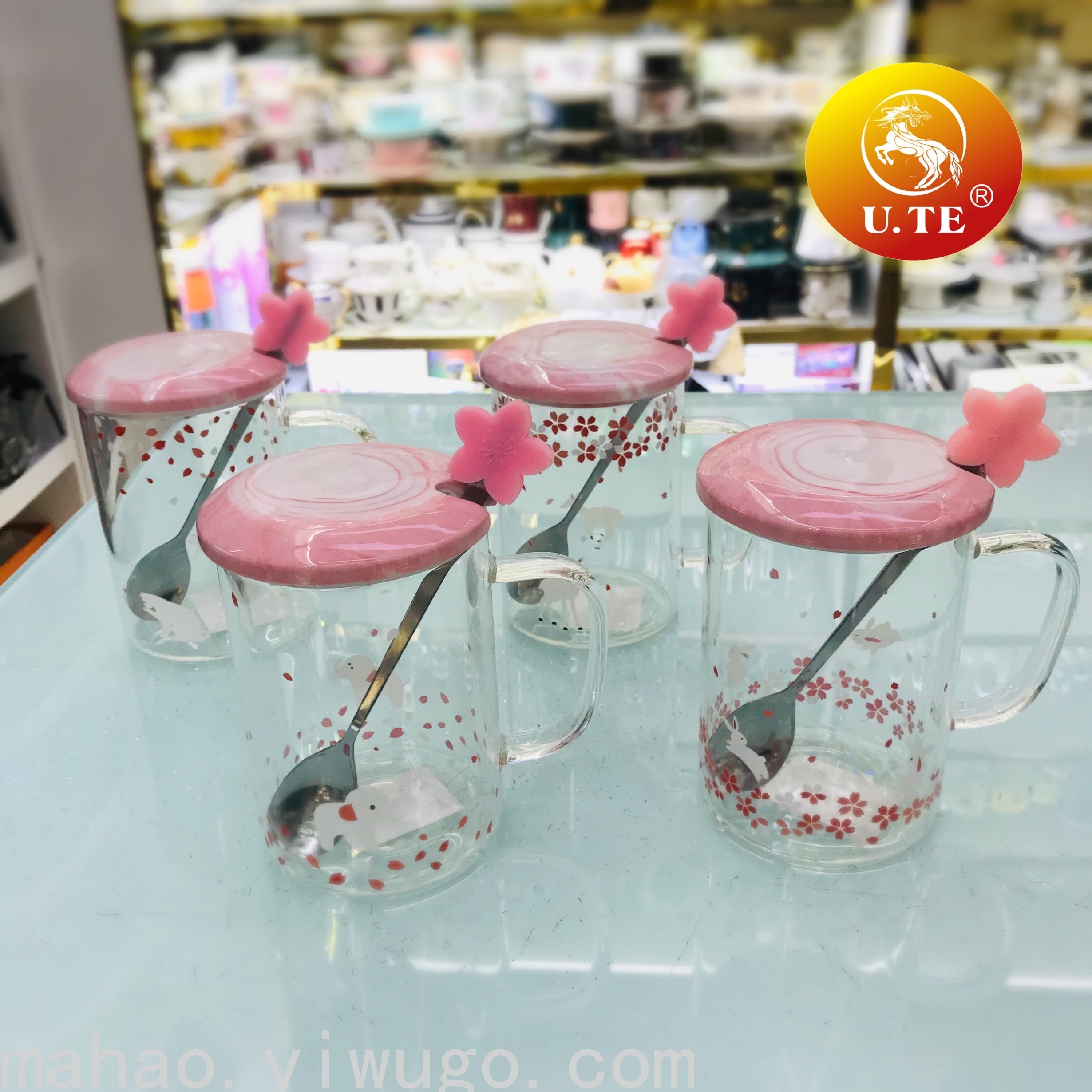 陶瓷盖直筒玻璃马克杯带勺