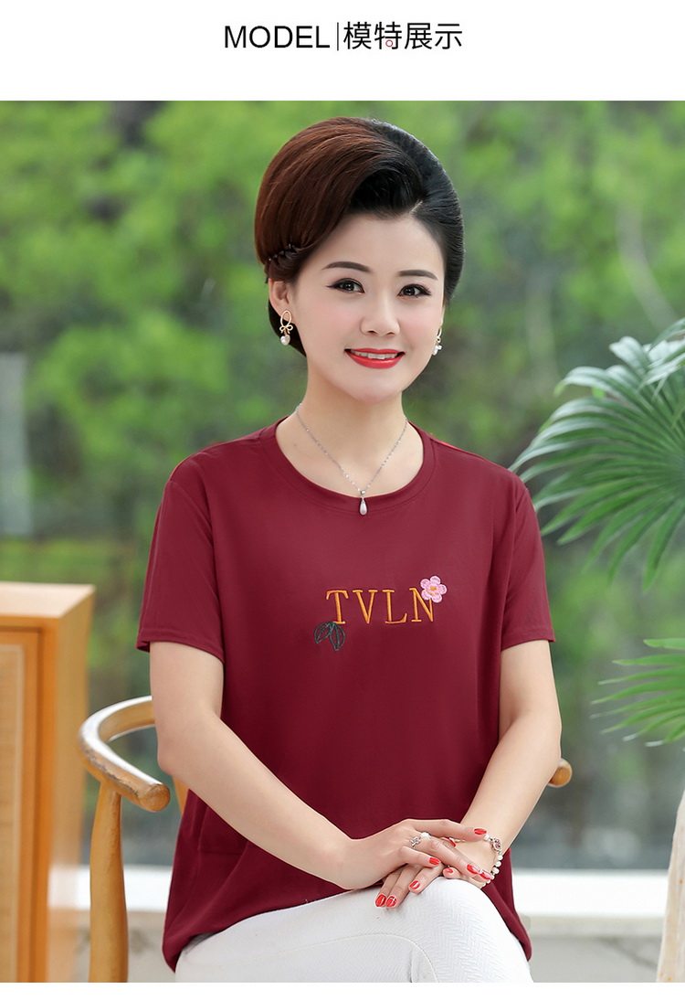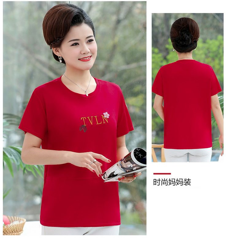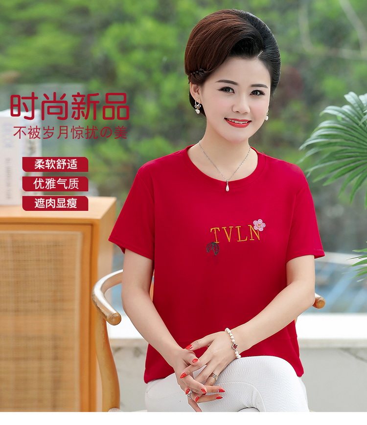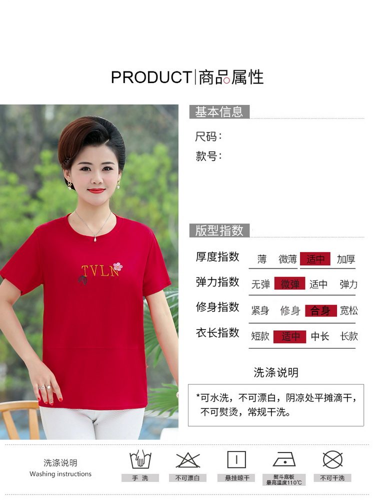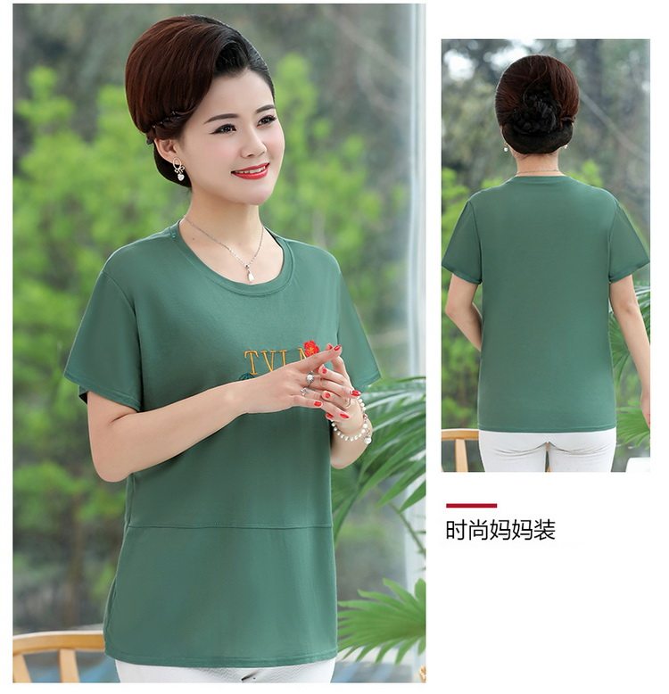 夏装新款印花短袖含棉T恤大码女装中年妈妈装休闲上衣宽松打底衫