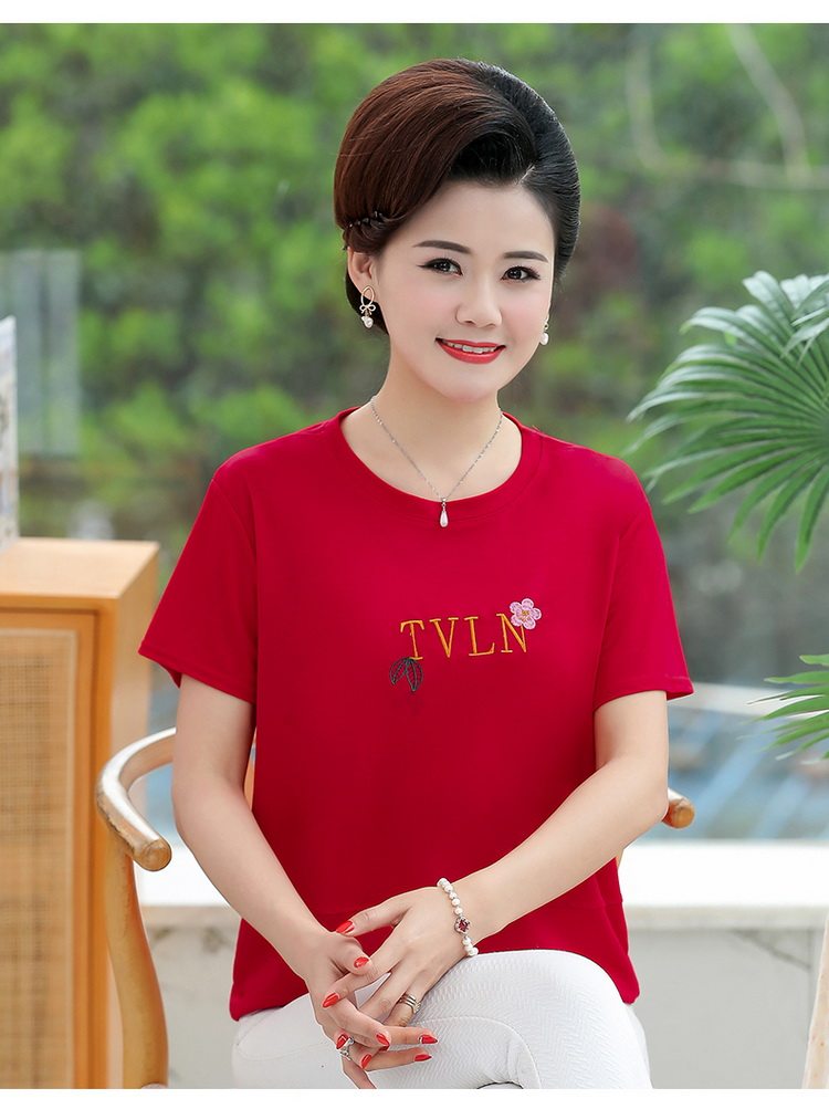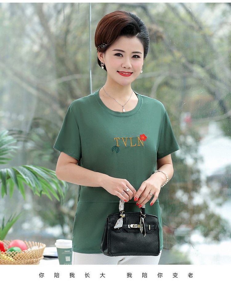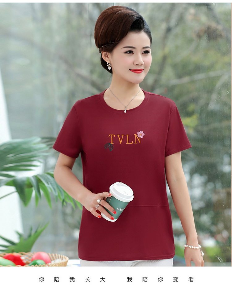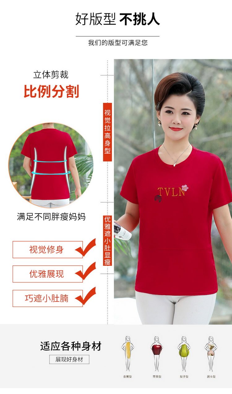 夏装新款印花短袖含棉T恤大码女装中年妈妈装休闲上衣宽松打底衫