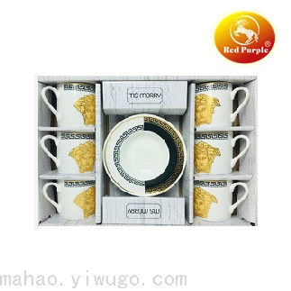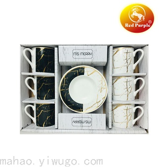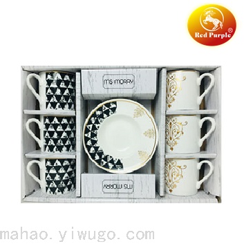 牙瓷直筒杯+宫廷碟 -双拼花系列