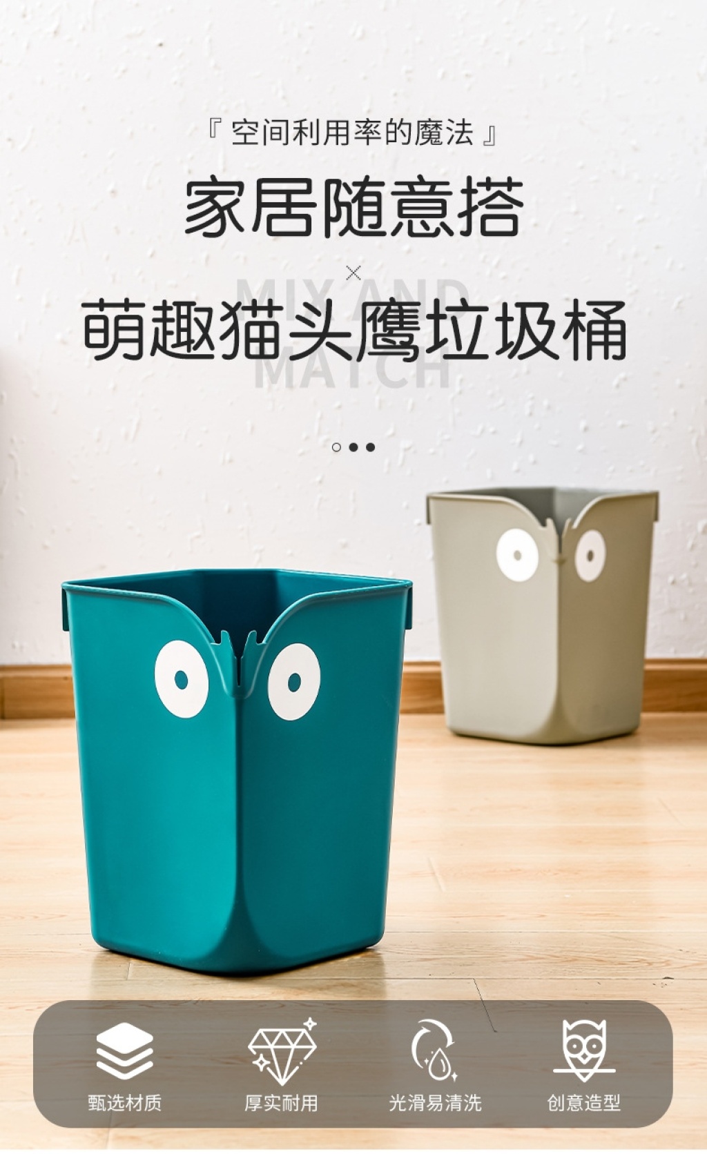 S81-331创意猫头鹰家用无盖垃圾桶厨房客厅收纳纸篓垃圾桶分类桶