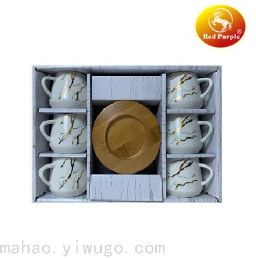 大理石纹大肚杯6杯 +Y平碟-乱纹系列