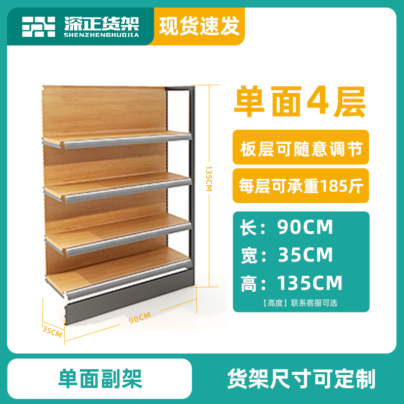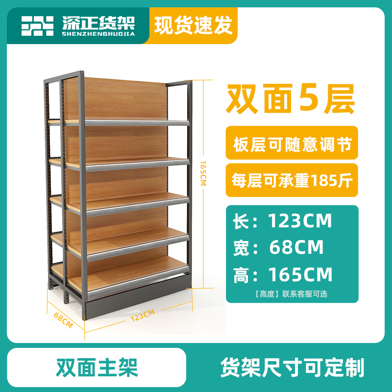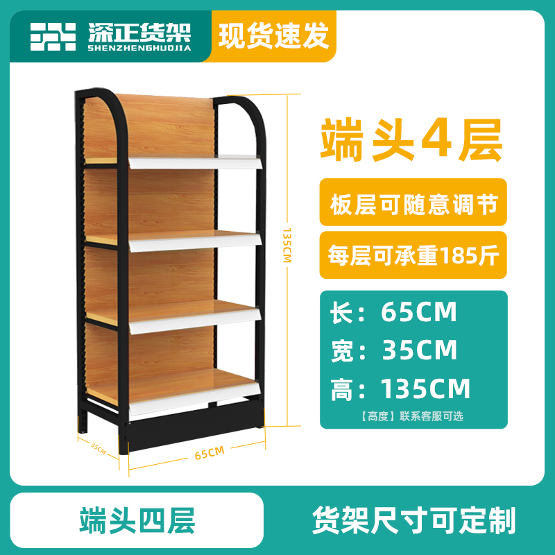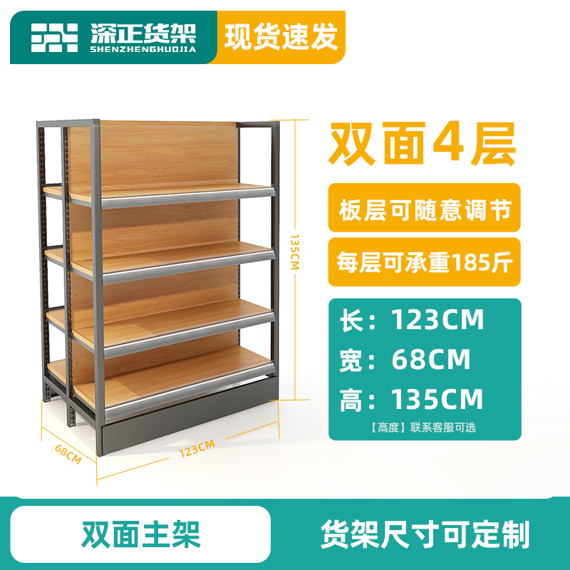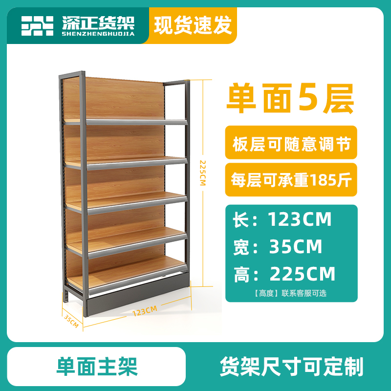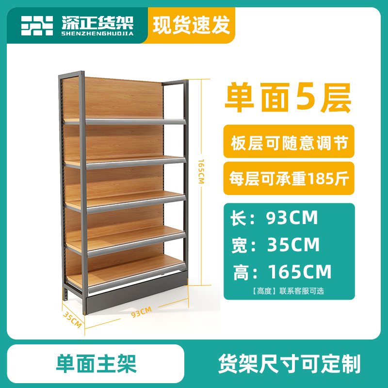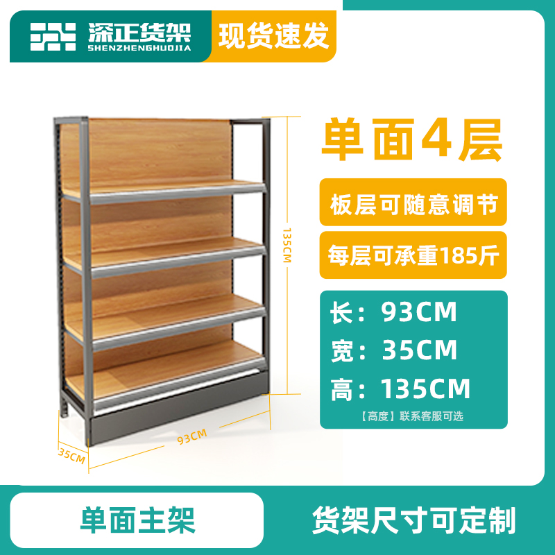 四柱超市货架钢木货架商品展示货架商店多层组合靠墙置物架子