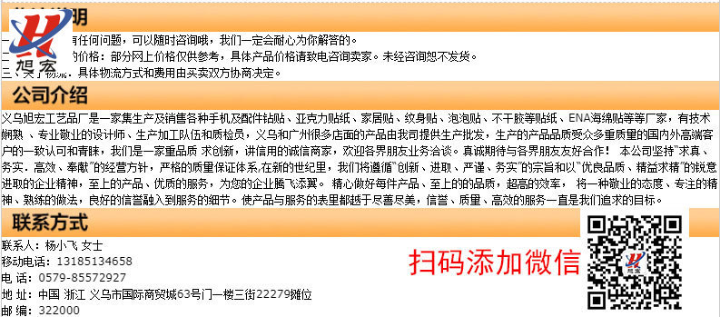 商铺地址:义乌国际商贸城三区63门1楼3街22279