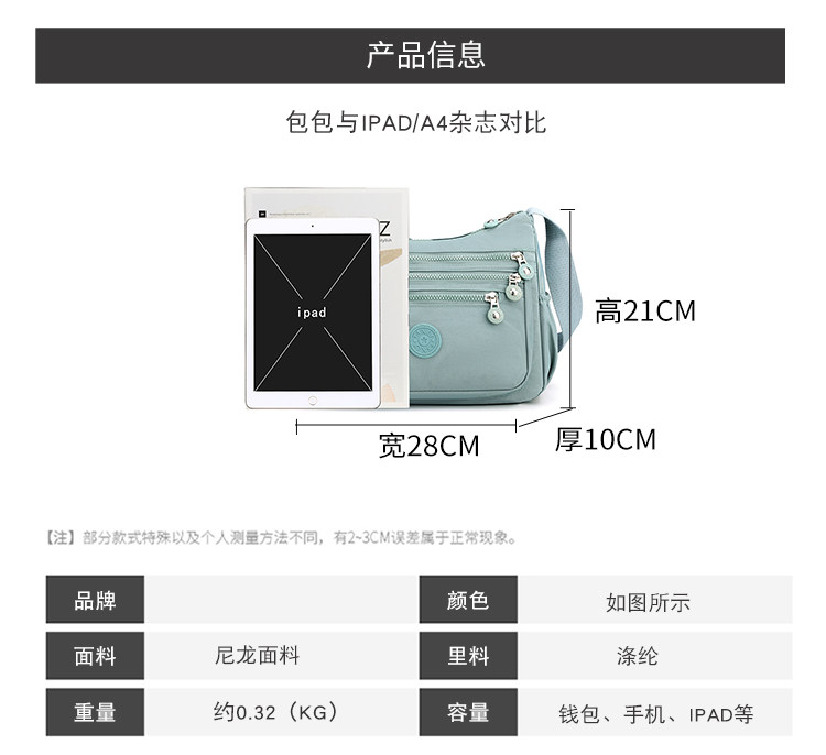 女包简约斜挎包小包大容量尼龙牛津布多隔层单肩
