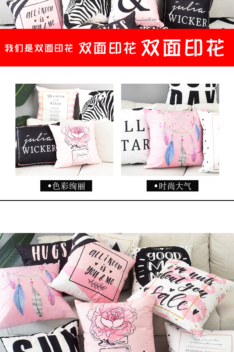 ins粉色少女亮色几何北欧抱枕套靠垫简约现代样板房客厅沙发靠枕