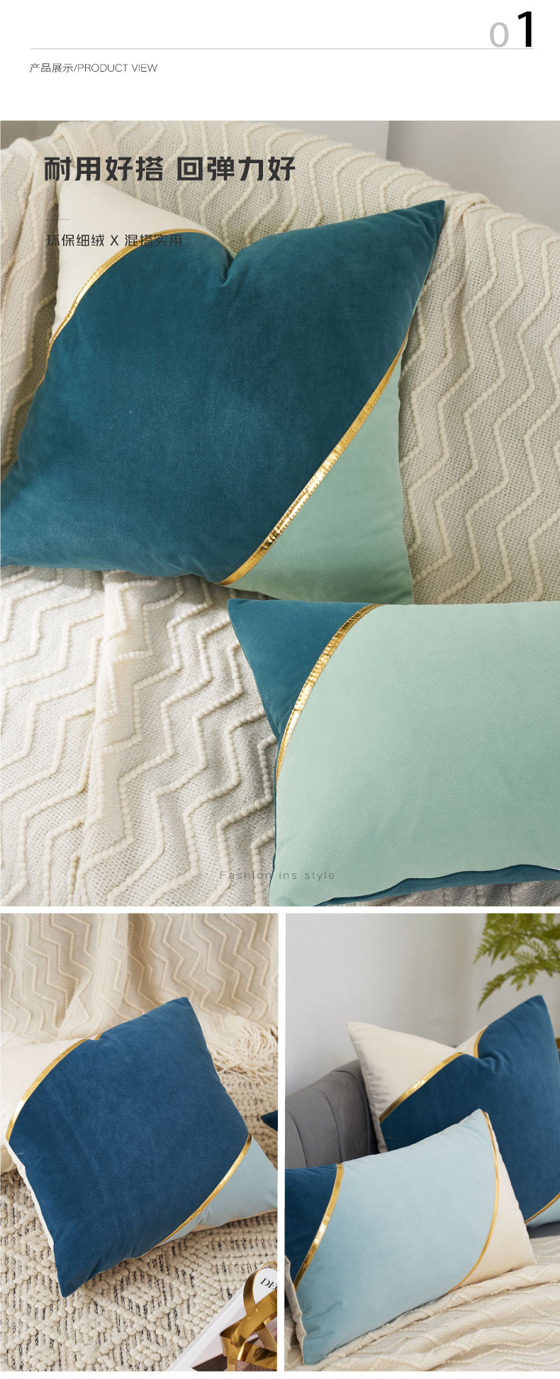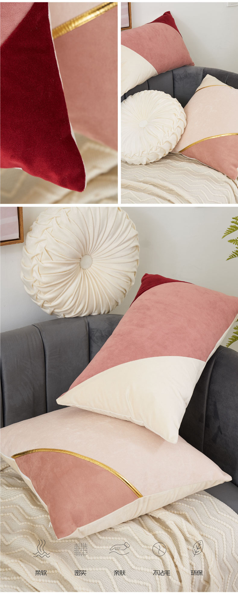 现代ins风沙发抱枕靠垫轻奢样板房办公室腰靠床头靠枕大靠背
