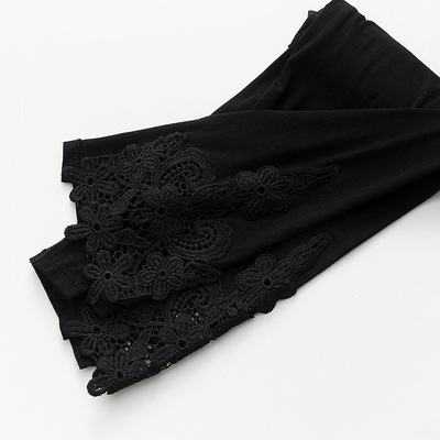 夏季新款花边莫代尔七分打底裤女外穿薄款大码显瘦蕾丝弹力裤批发