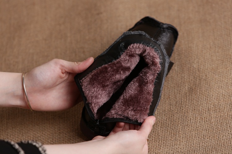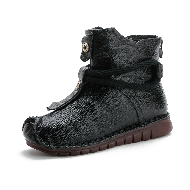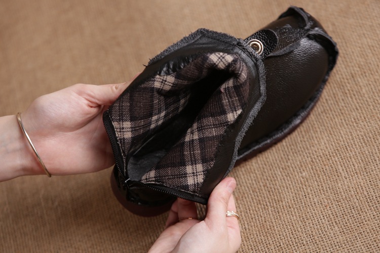 秋冬新款真皮女鞋民族风复古平底女靴圆头保暖大码棉鞋休闲马丁靴