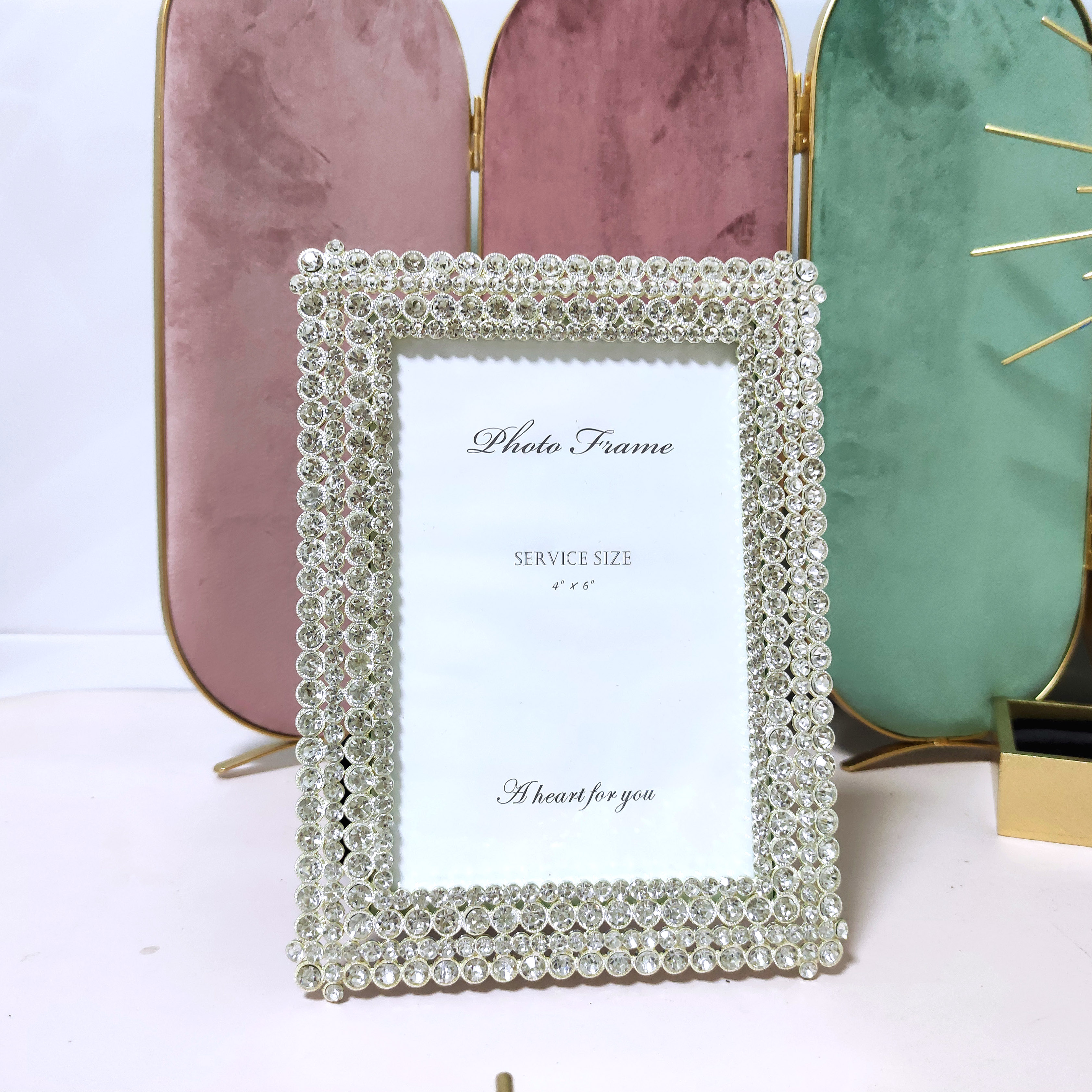 出口6寸7寸水钻金属相框摆台金银结婚照婚纱照水晶欧式现代精致